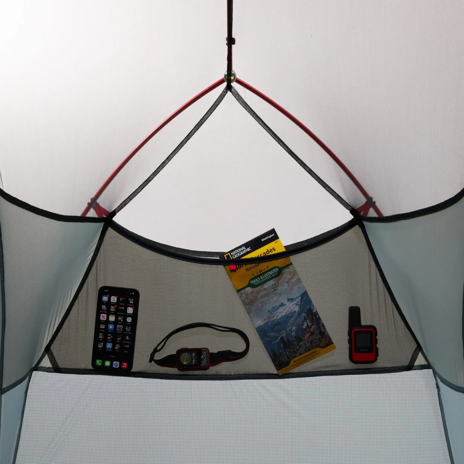 Большая верхняя полка для снаряжения идеально подходит для налобного фонаря, солнечных очков и других предметов быстрого доступа, а прилагаемая веревка для одежды позволяет вам высушить damp одежду.