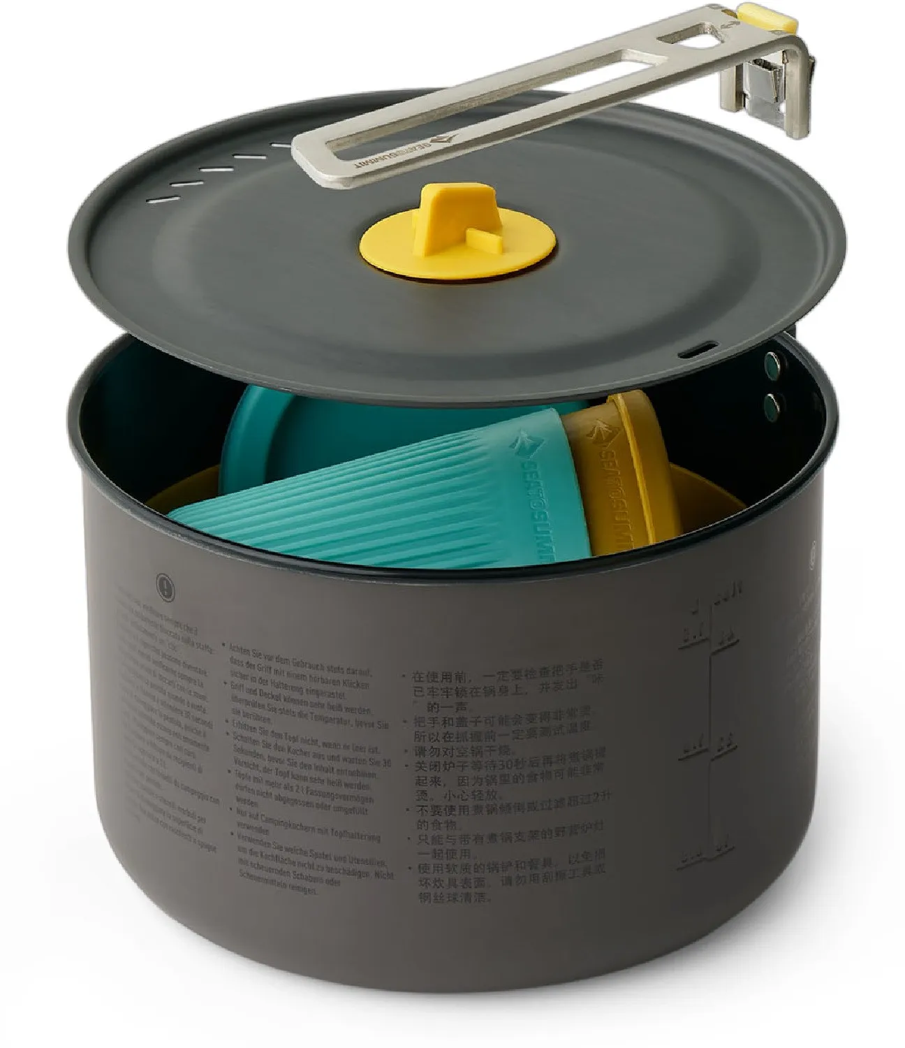 Включает 2-литровую кастрюлю Frontier, 2 средние чаши Passage и 2 чашки Passage. Кастрюля Frontier изготовлена из анодированного алюминиевого сплава для отличного теплопередачи и покрыта керамическим антипригарным слоем для легкой готовки и уборки. Съемная рукоятка Click-Safe обеспечивает надежное удержание и может быть перевернута, чтобы удерживать крышку и размещать содержимое на месте для хранения. Крышка оснащена удобной ручкой и патентованным уплотнением LidKeep, позволяющим удобно прикреплять крышку к краю кастрюли. Чаши и чашки Passage сделаны из полипропилена, усиленного стекловолокном, пригодного для контакта с пищей, который легко чистится, подходит для микроволновой печи и посудомоечной машины. Чаша и чашка имеют боковые стенки Cool-Grip, которые позволяют надежно держать их, независимо от того, насколько горячими или холодными являются их содержимое. Изгиб между боковой стенкой и основанием чаши Passage идеально сочетается с любыми ложками и споргами Sea to Summit (не включены), чтобы вы могли насладиться каждой крошкой. Гарантия Sea to Summit предоставляется на весь срок службы этого продукта.