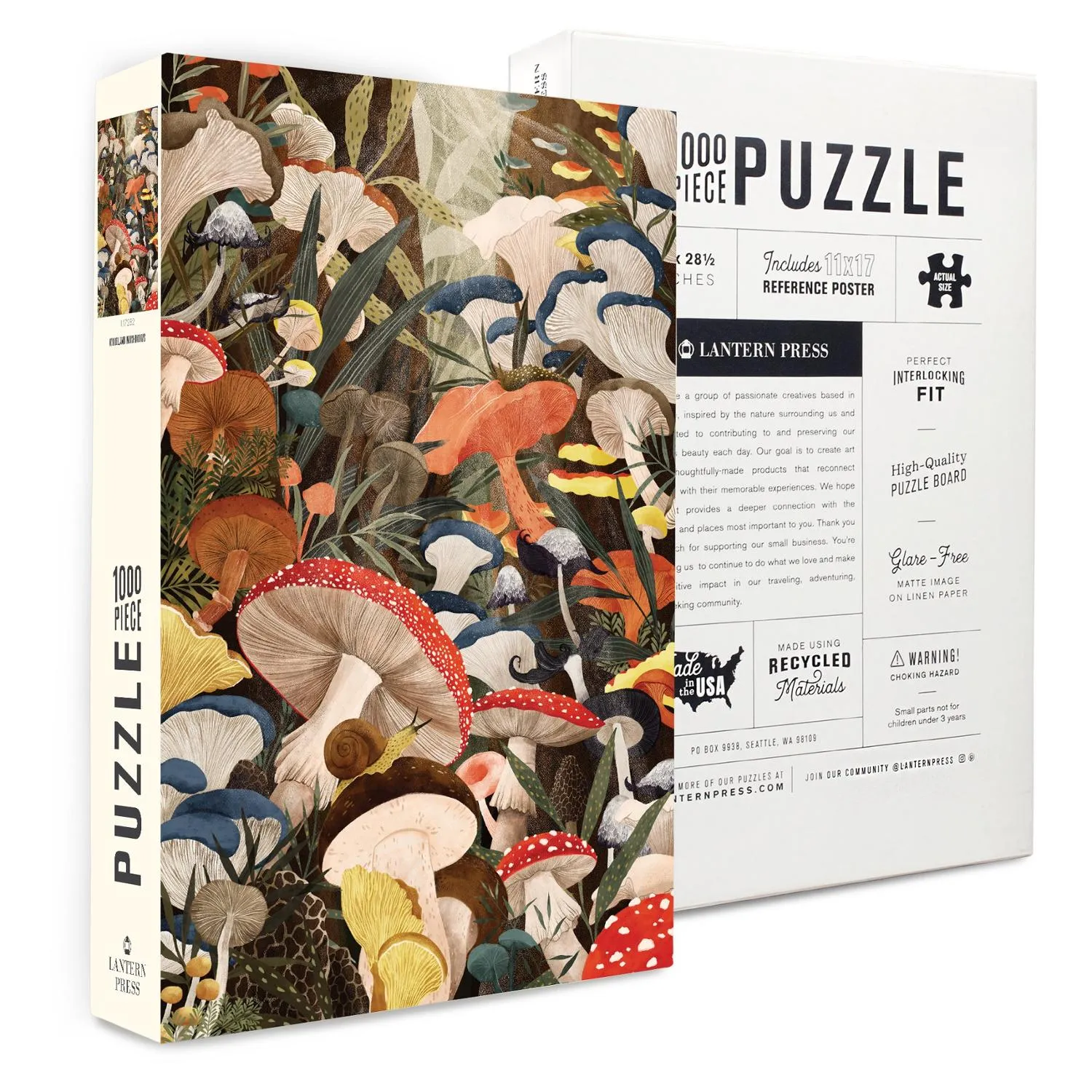 Если вам нравится вызов, пазл из 1000 кусочков "Лесные грибы" от Lantern Press может быть именно тем, что вам нужно. Этот замысловатый пазл, покрытый красочными грибами, — отличный способ провести дождливый день.
