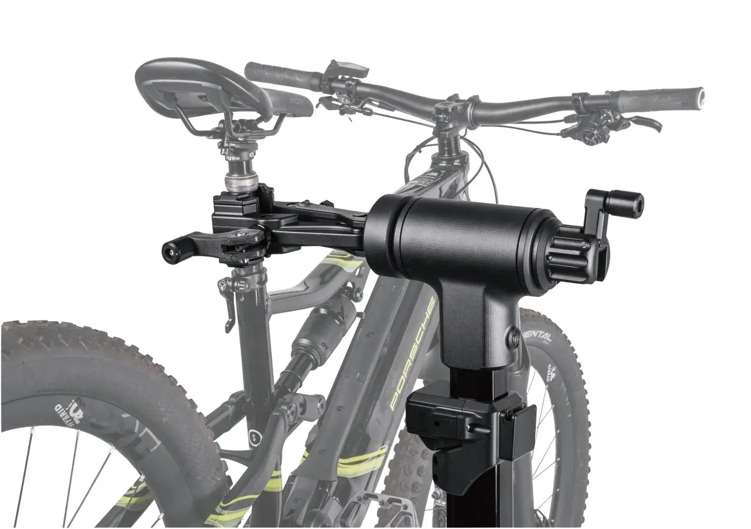 Крепежный зажим с поворотом на 360° с немаркими челюстями быстро и надежно удерживает ваш велосипед в стабильном состоянии для ремонта, чистки и общего обслуживания