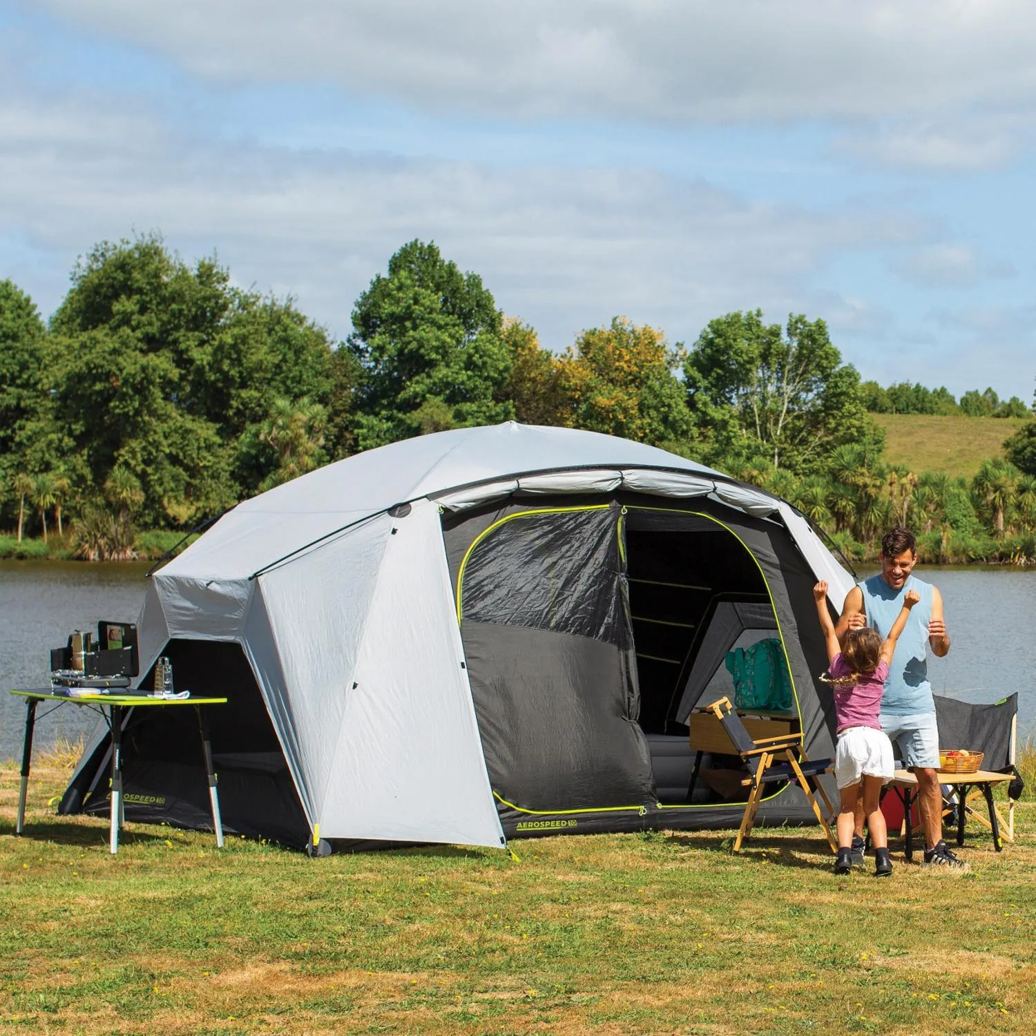 Испытайте быстрое время сборки и настройте свои семейные походы. Просторная палатка Zempire Aerospeed 10 с двумя входами надувается за менее чем 2 минуты, так что вы можете сразу же приступить к приготовлению сморков.