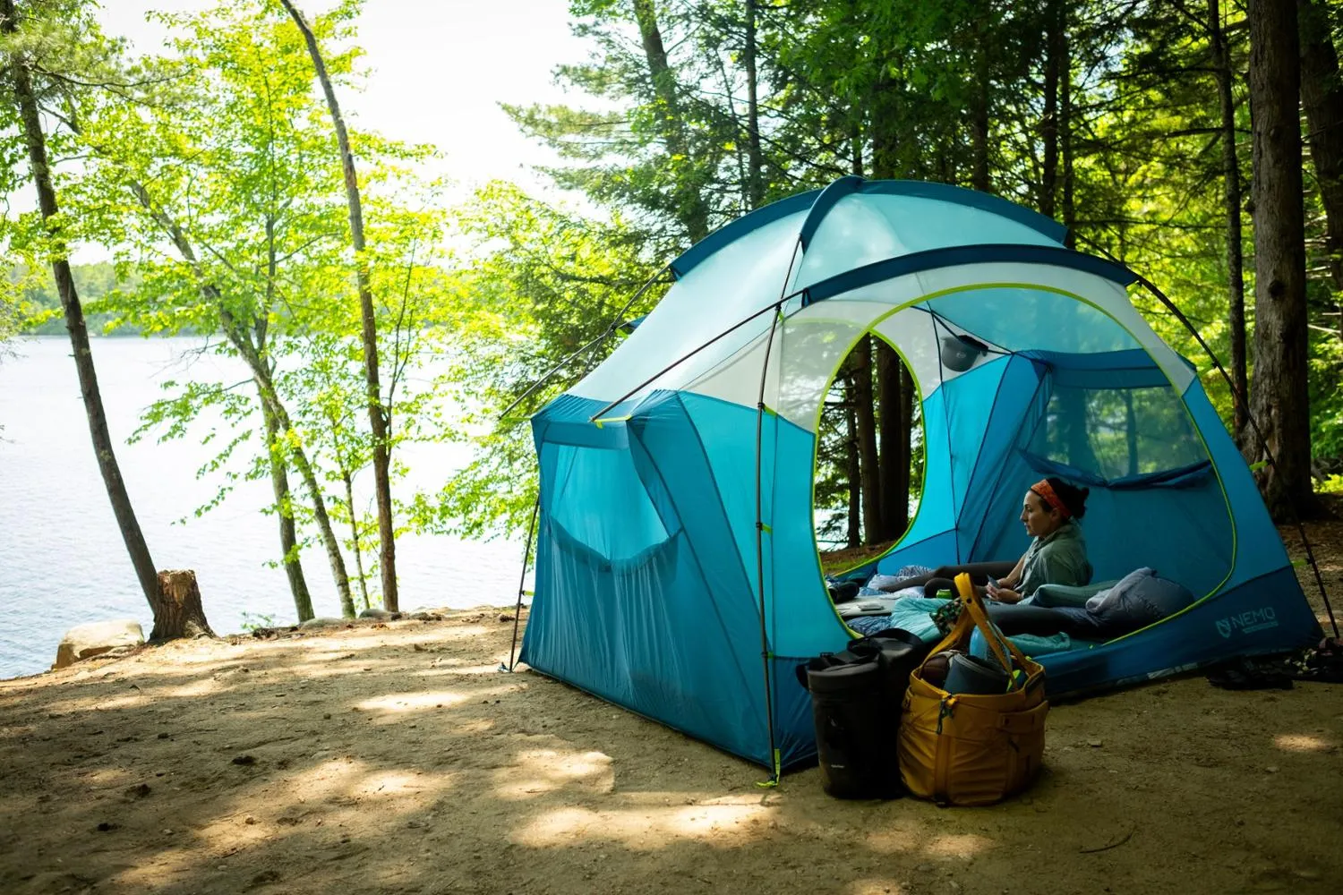 Идеально подходит для семейного отдыха или просто для того, чтобы растянуться вдвоем, палатка NEMO Aurora Highrise на 4 человека имеет простую установку и просторный дизайн с высотой для стоя.