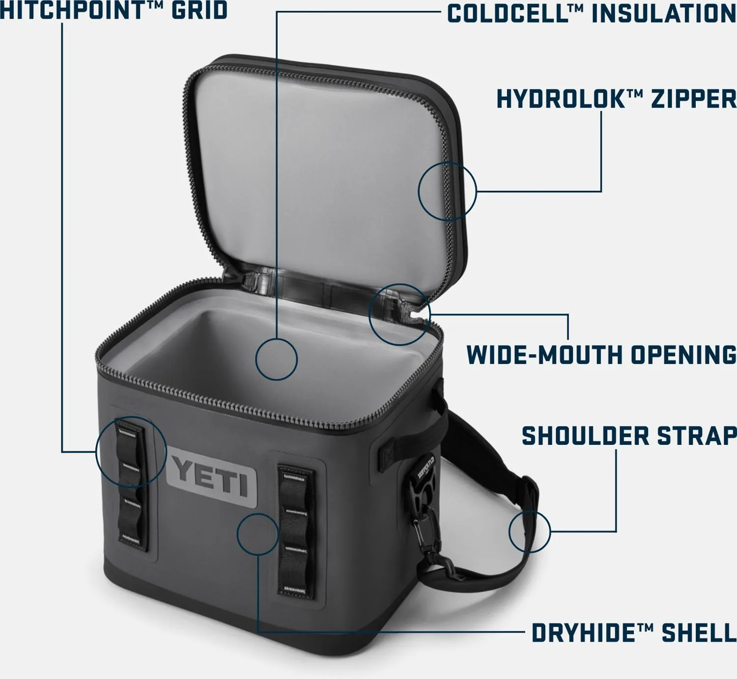 Достаточно прочный, чтобы справиться с любым приключением, и с верхней ручкой для удобной переноски, мягкий кулер YETI Hopper Flip 12 сохраняет обед и несколько напитков холодными в течение нескольких часов.