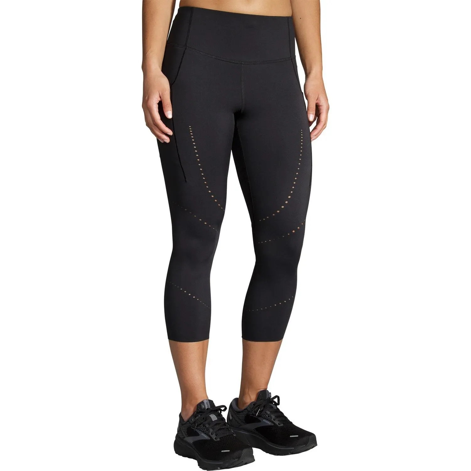 Так же плавные, как и поддерживающие, леггинсы для женщин Brooks Method 3/4 имеют легкий вес и стратегические перфорации для лучшей воздухопроницаемости, пока вы переходите от солнцезащитных приветствий к Савасане.