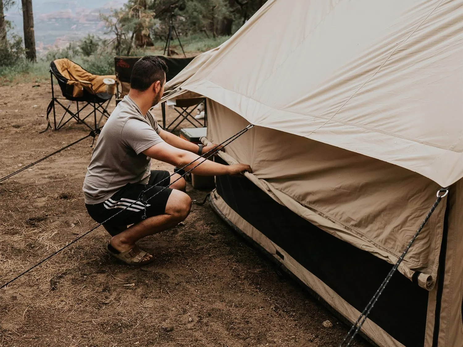 Высокий центральный потолок и высокие стены создают достаточно места для стояния и передвижения внутри вашей палатки