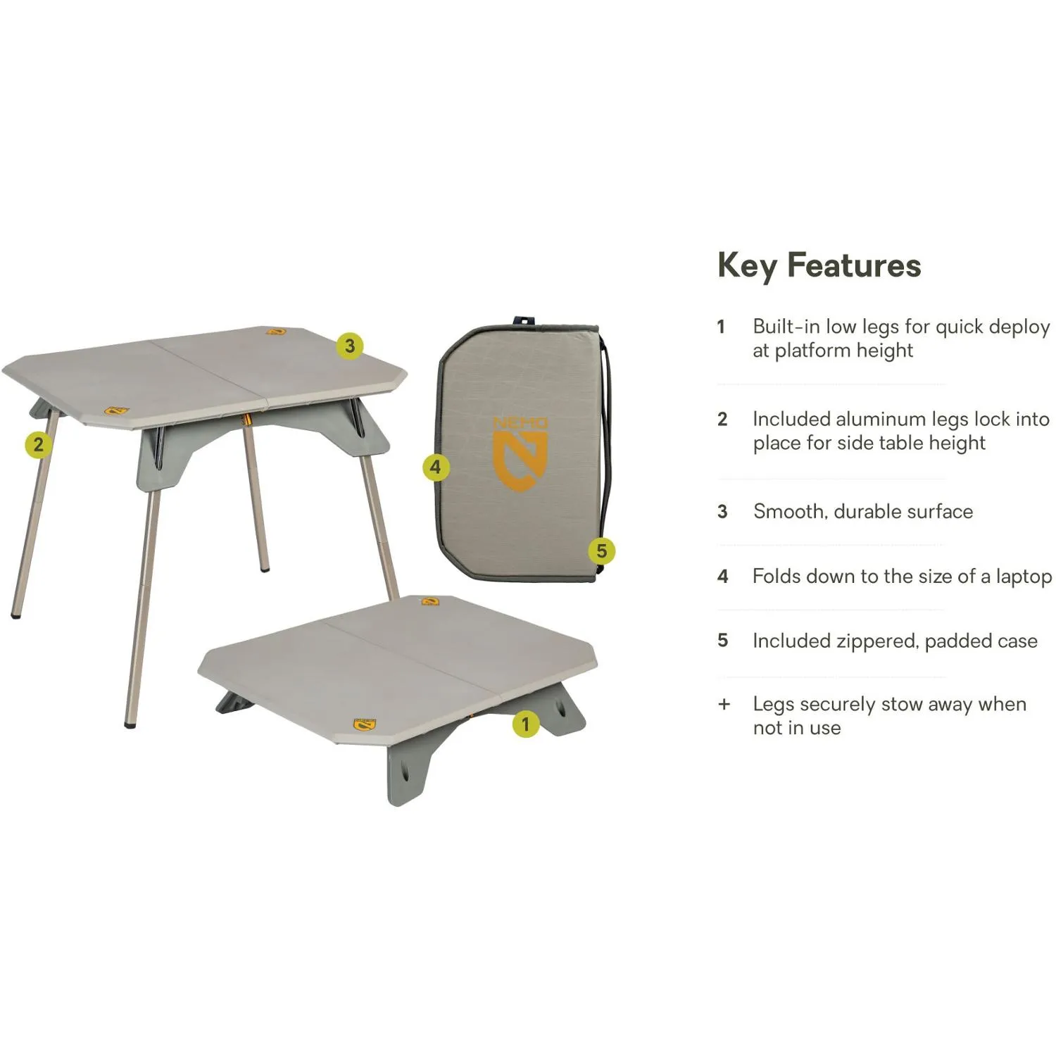 Универсальное дополнение к вашему кемпинговому набору, стол NEMO Moonlander с двумя высотами имеет трансформируемый дизайн, который дает вам надежное место для пикника или идеальное место для наслаждения кемпинговой едой.