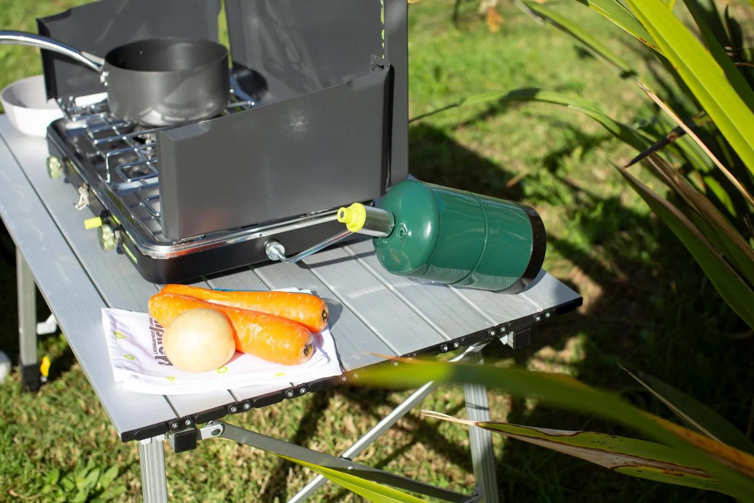 2 мощных горелки (12 200 BTU) позволяют быстрее приготовить пищу на кемпинге