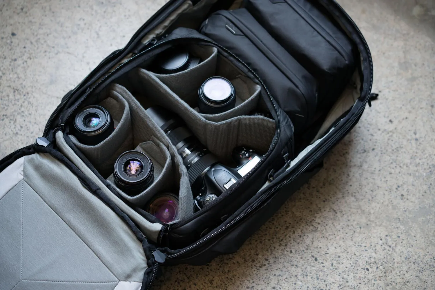 Задняя крышка обеспечивает полный доступ для легкой упаковки и распаковки; рюкзак также имеет боковой и передний доступ