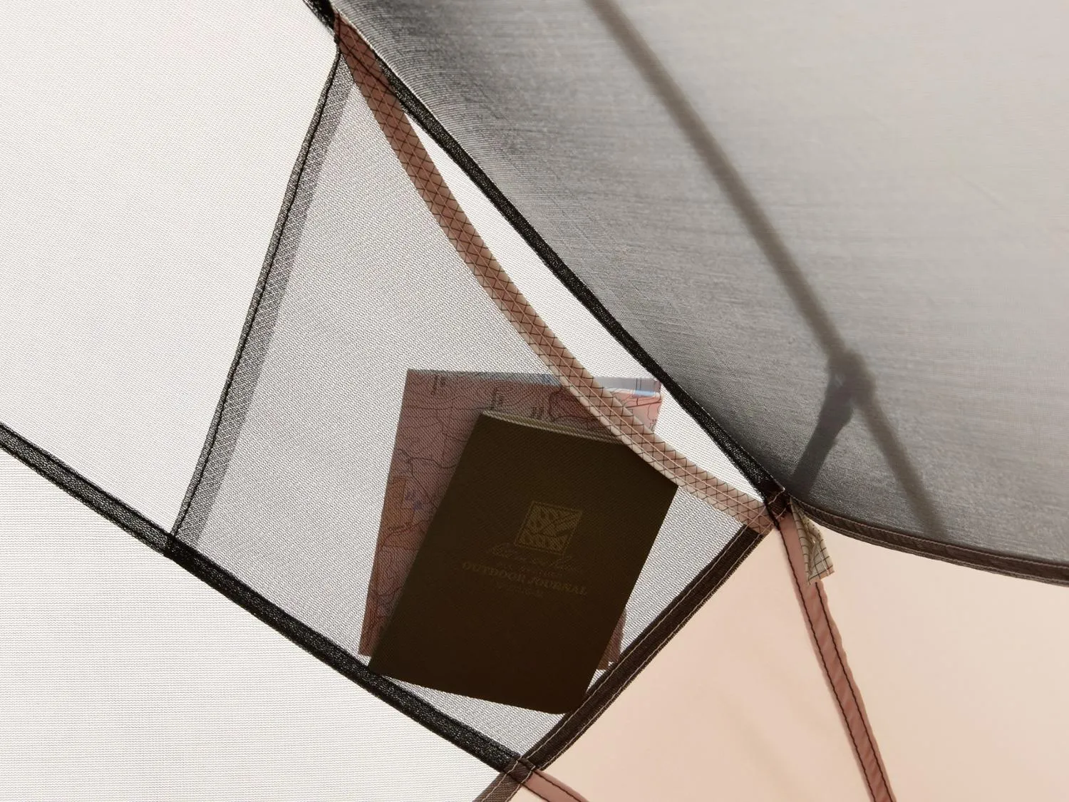 Сетка в верхней части козырька улучшает вентиляцию и позволяет наблюдать за ночным небом