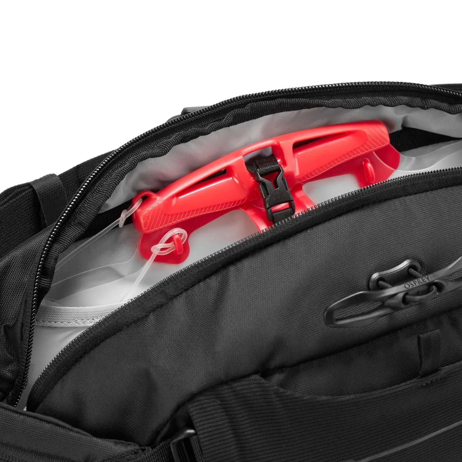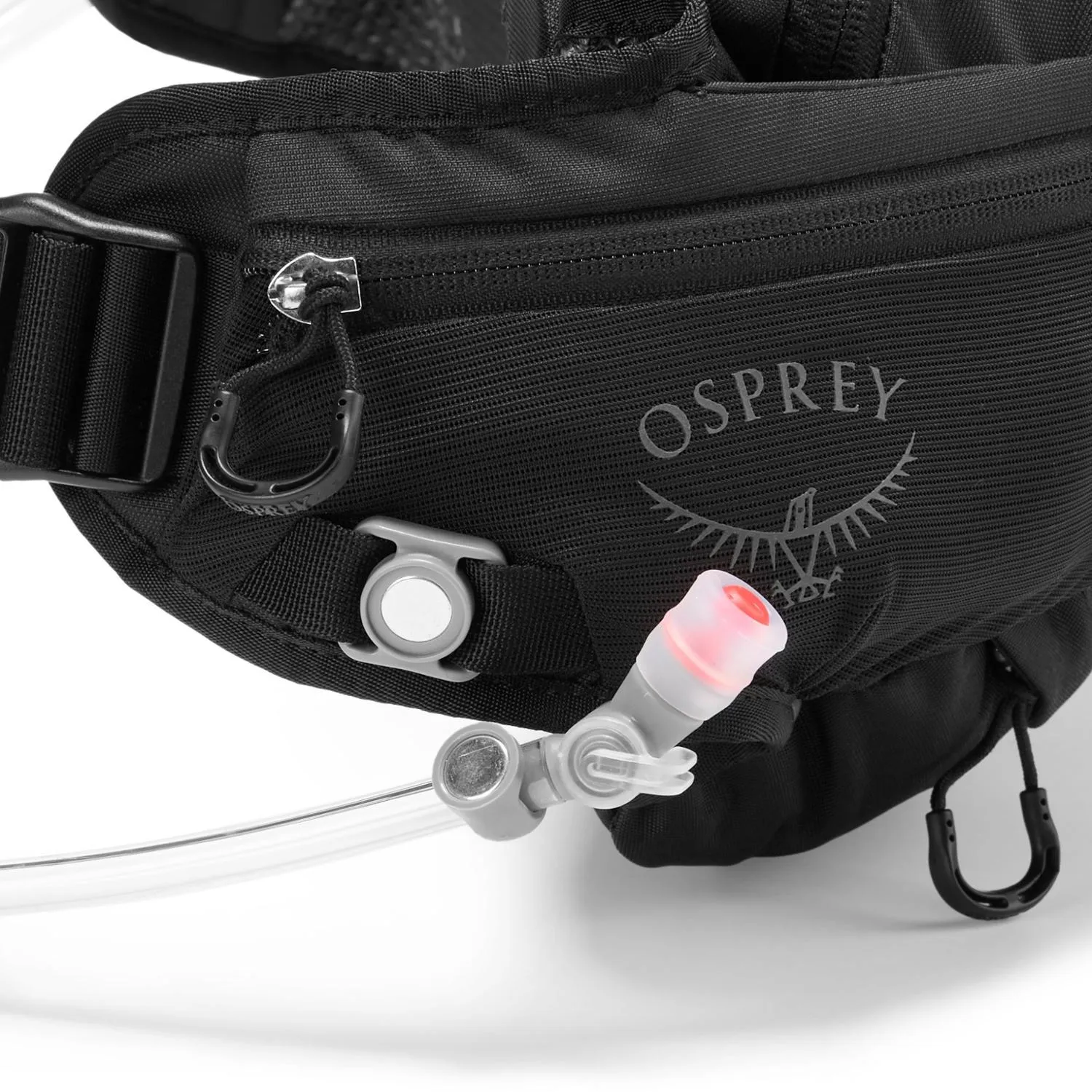 В комплект входит резервуар Osprey Hydraulics объемом 1,5 литра с прочной магнитной привязкой к поясу и возможностью управления трубкой слева или справа