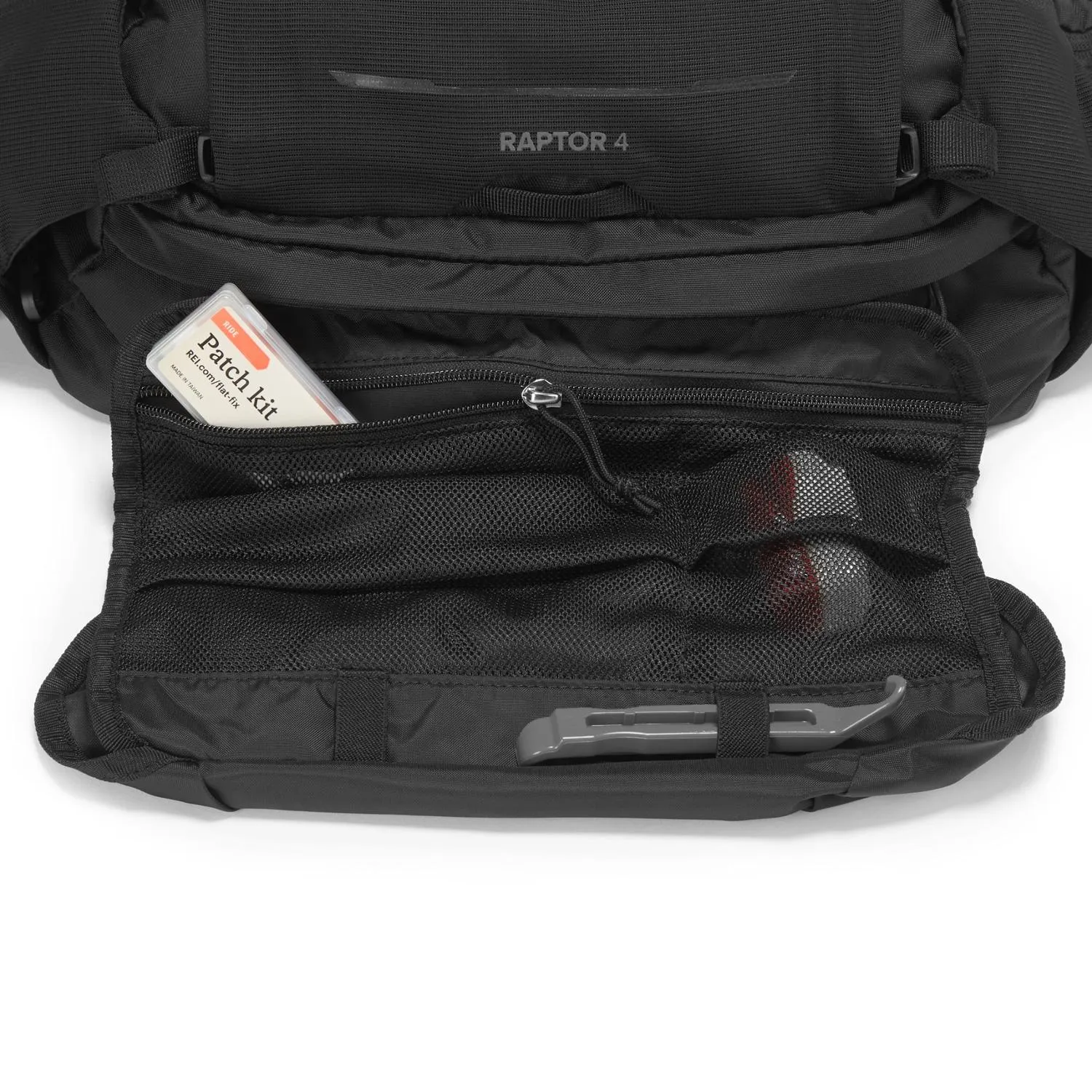 Эластичный сетчатый передний карман может вместить небольшие наколенники, перчатки или легкую куртку