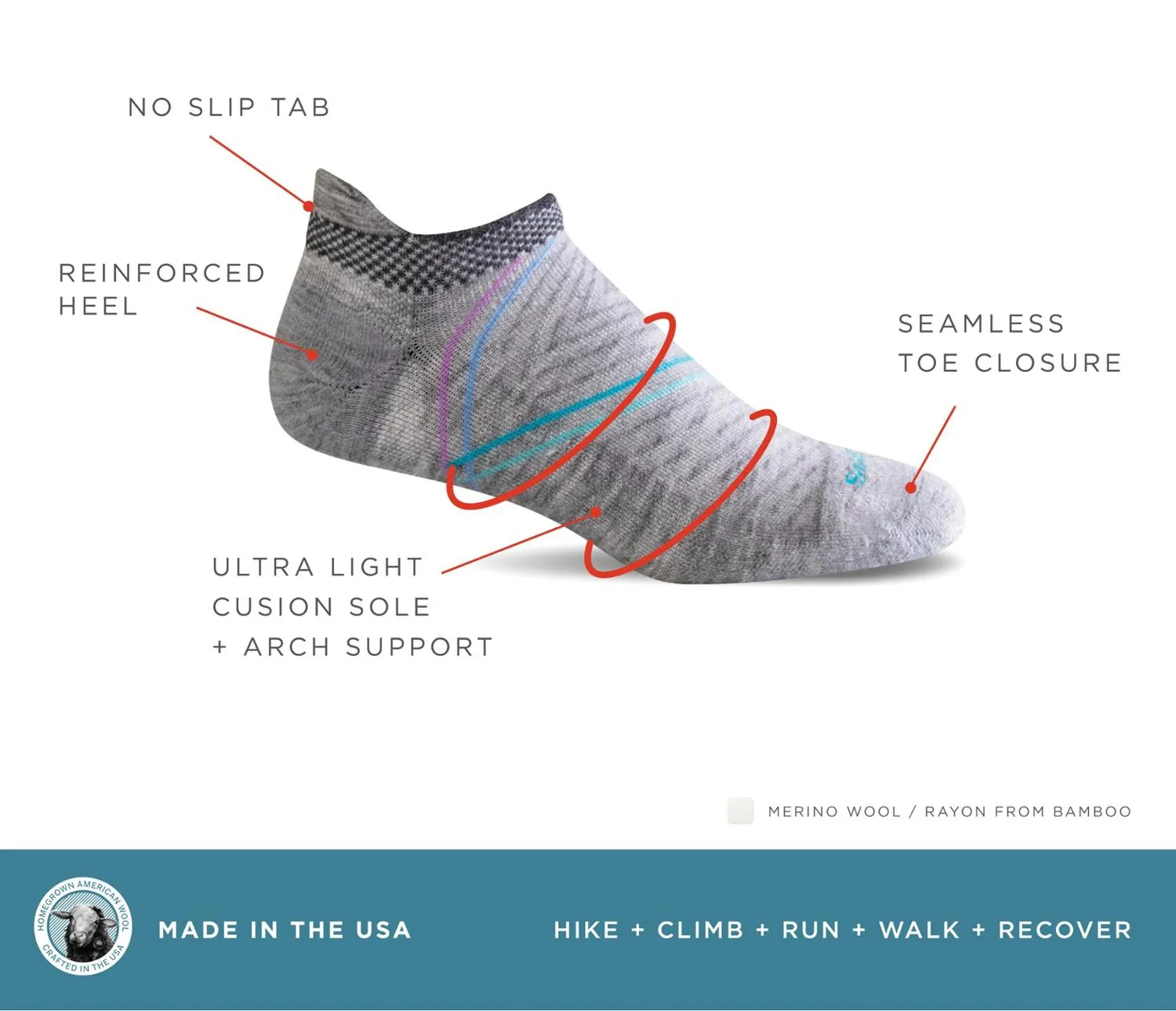 Ткань: 32% Нейлон/31% Мериносовая шерсть/31% Бамбуковый вискоз/6% Спандекс