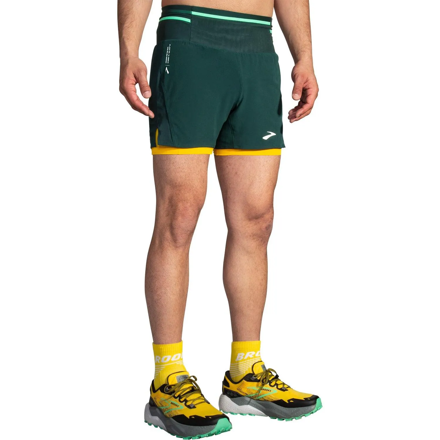 Предлагая комфорт для трейлов с дополнительным местом для хранения, мужские шорты Brooks High Point 5 дюймов 2 в 1 имеют разрезы по бокам для свободы движений при восхождениях и подштанники-бриджи для встроенной поддержки.
