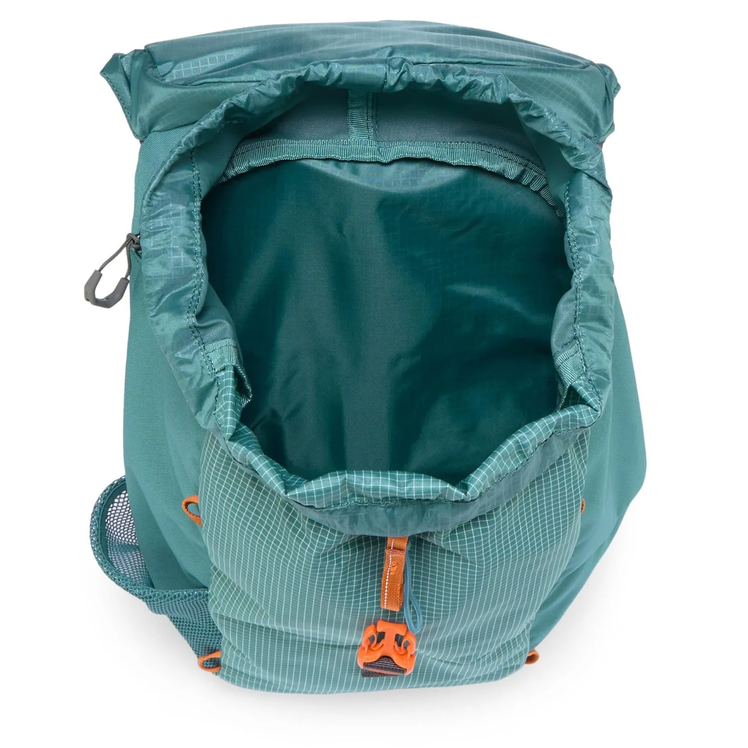 Материалы: Корпус/дно: Нейлон высокой плотности 210 ден (40% Переработанного)/100% Переработанный полиэстер 450 ден; подкладка: Полиэстер 135 ден (40% Переработанный); подвеска: Перфорированная пена CLPE; C0 DWR