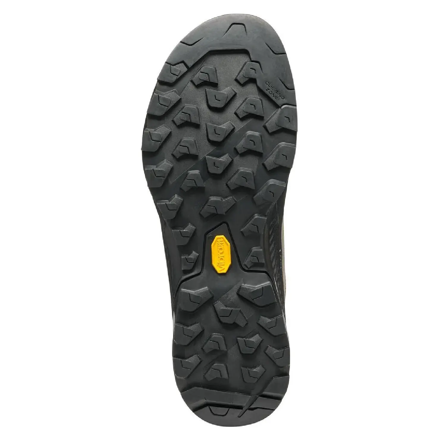Эргономичная форма передней части стопы и надежная шнуровка обеспечивают комфортную, но точную посадку для уверенности на любой поверхности. 360° ранд обеспечивает защиту на каменистом рельефе. Резина Vibram Megagrip обеспечивает максимальное сцепление как на мокрых, так и на сухих условиях. Дизайн подошвы включает зоны для лазания в передней части и тормозные зоны в пятке, чтобы вы оставались уверенно стоять на любой поверхности.