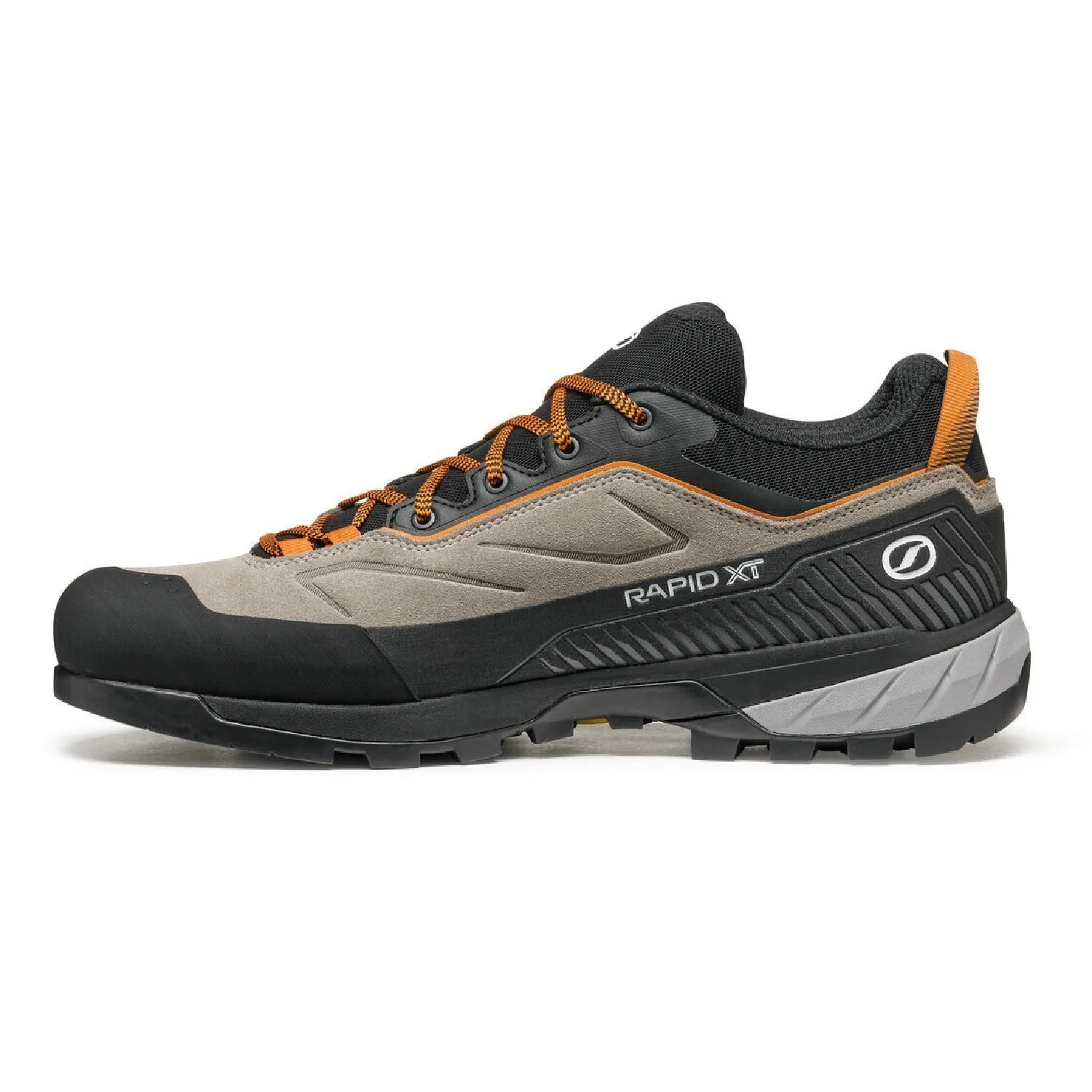 Технические гибриды для любого типа местности, мужские подходные обуви Scarpa Rapid XT сочетают в себе сцепление подошв Vibram Megagrip и прочную поддержку замшевых верха с полнометражными тесьмами.