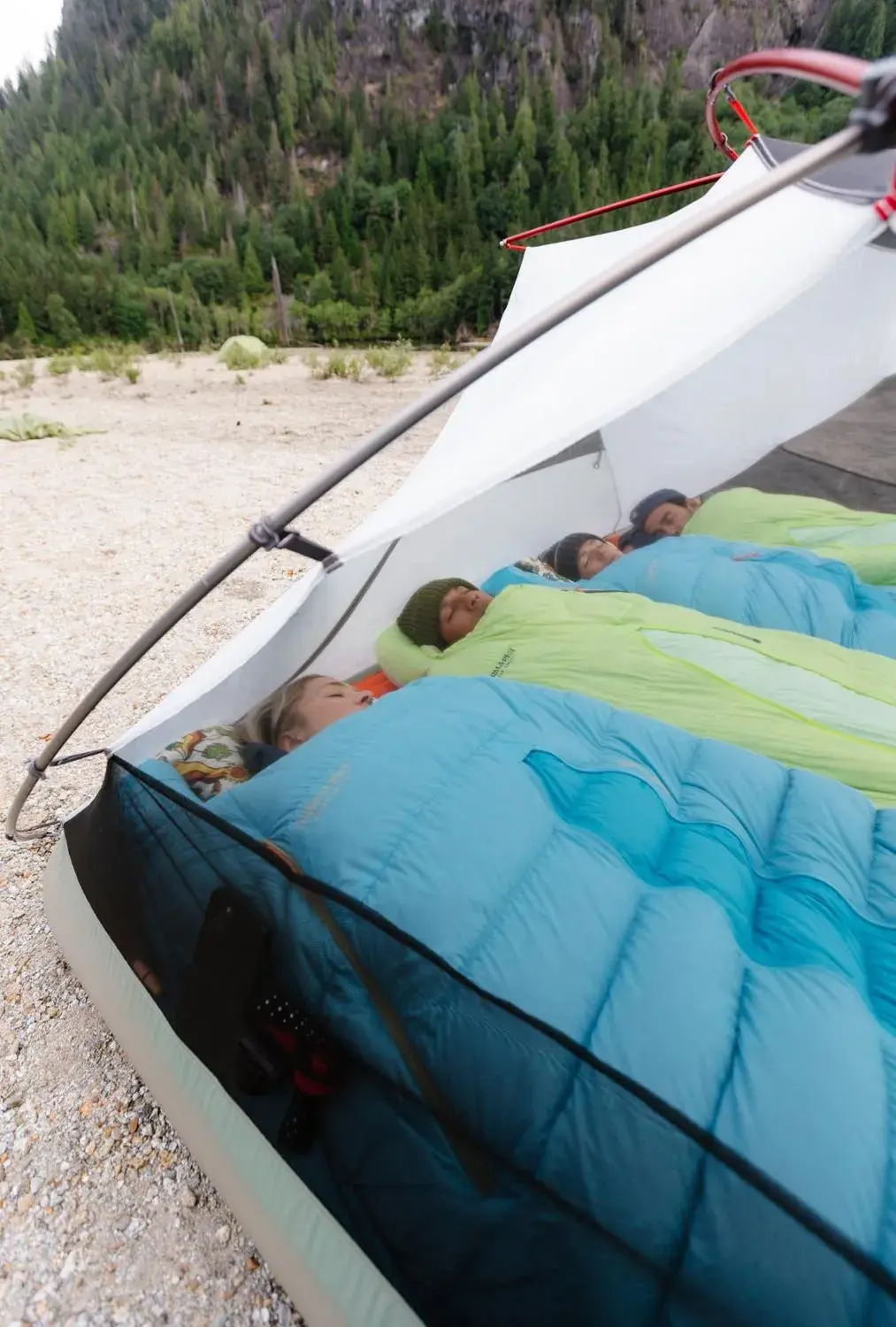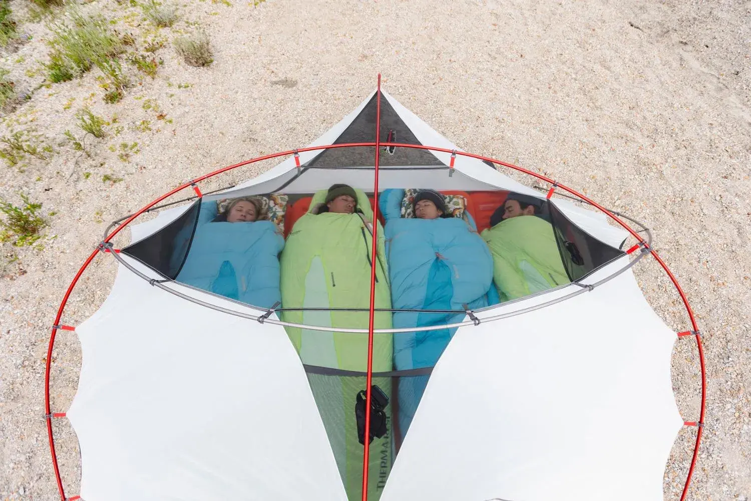 Внутри палатки пространство составляет 55 квадратных футов (5,11 квадратных метра); правда, прямоугольный план и просторный интерьер легко вмещают современные широкие спальные коврики