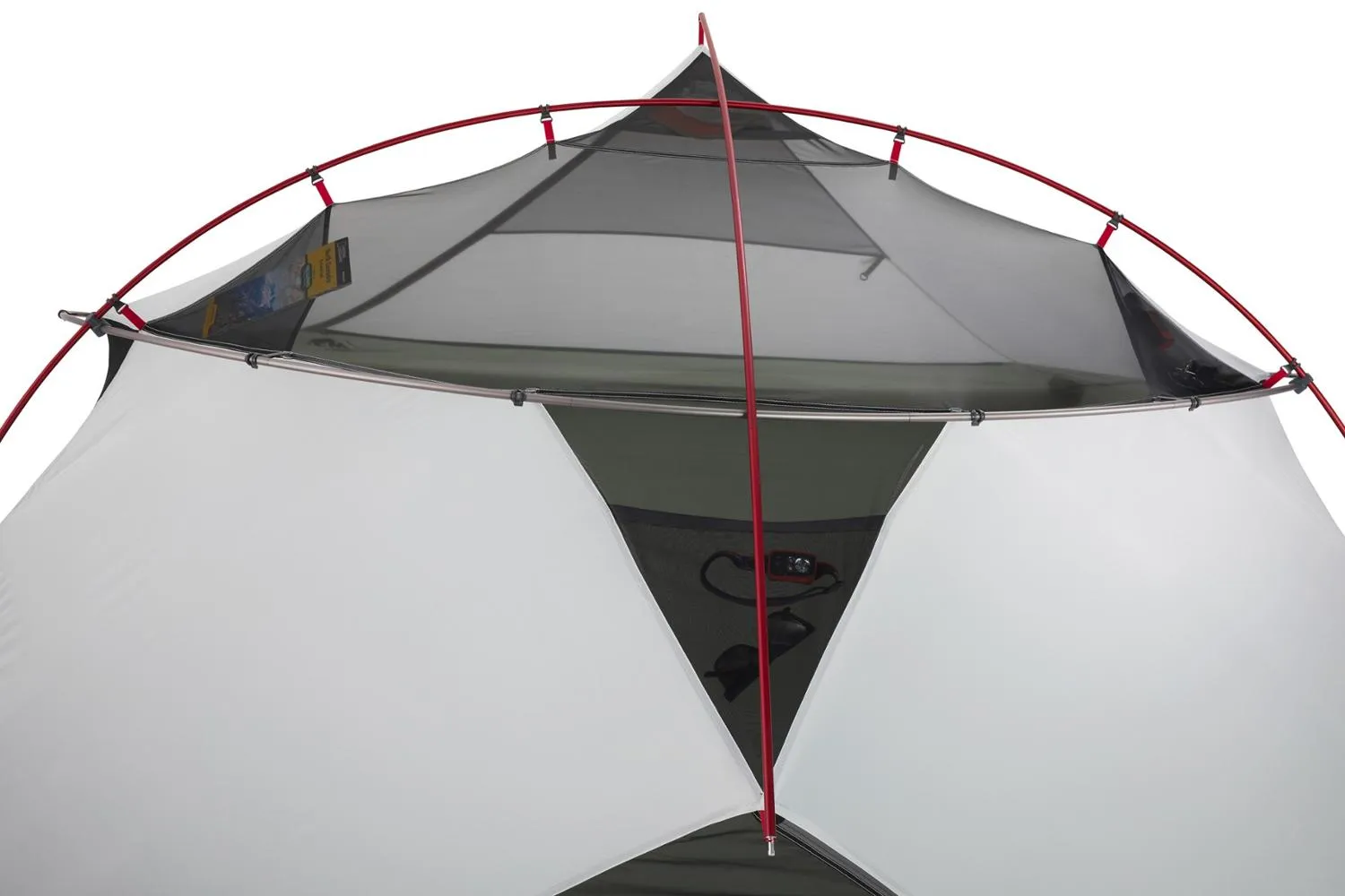Включает в себя тело палатки, дождевик, полюсы, подстилку, 10 колышков MSR, натяжные веревки, чехол для упаковки и инструкции по установке