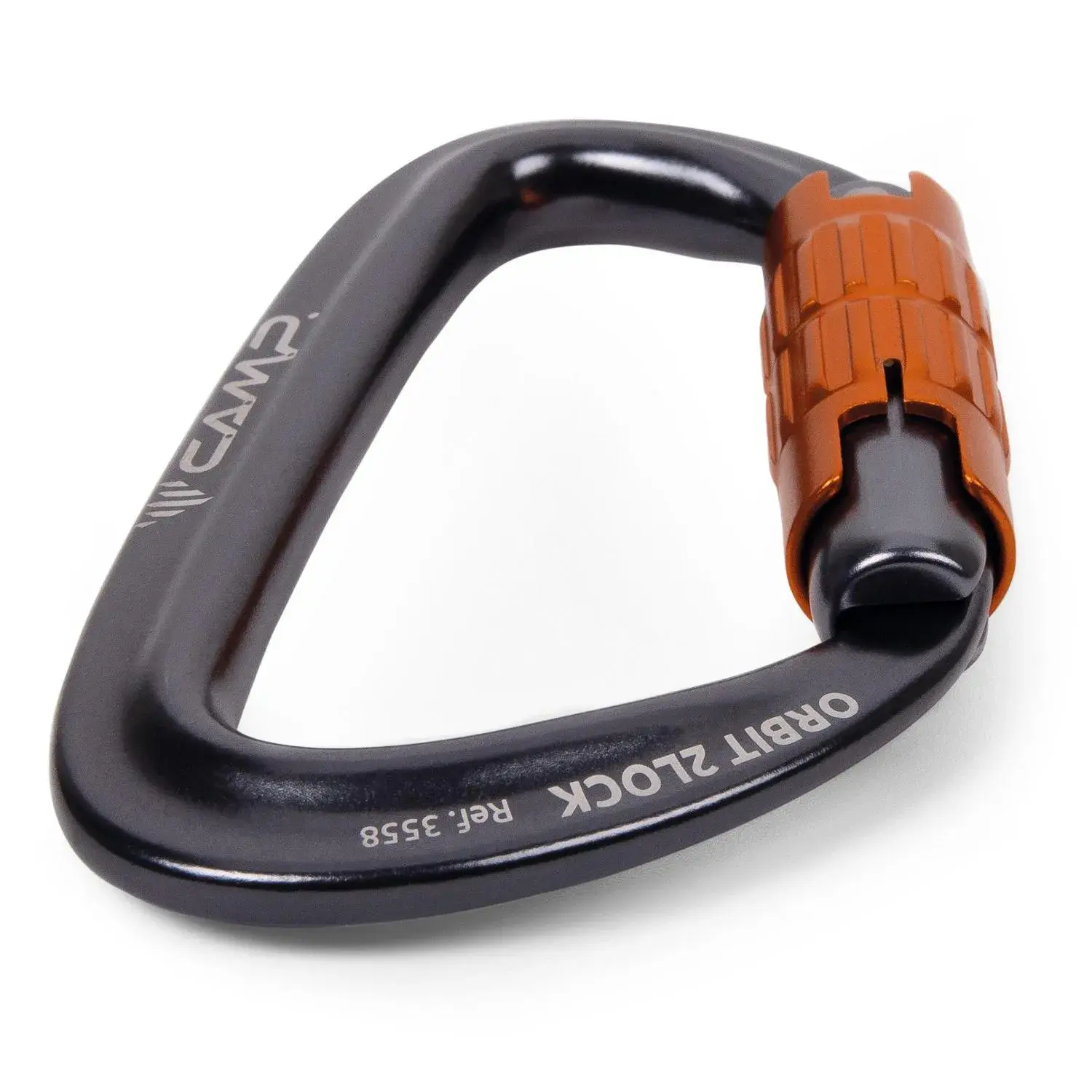 Компактный, легкий и с автоматическим замком, карабин C.A.M.P. Orbit 2Lock особенно подходит для крепления к якорям и использования с механическими устройствами, такими как устройства с автоматическим торможением.