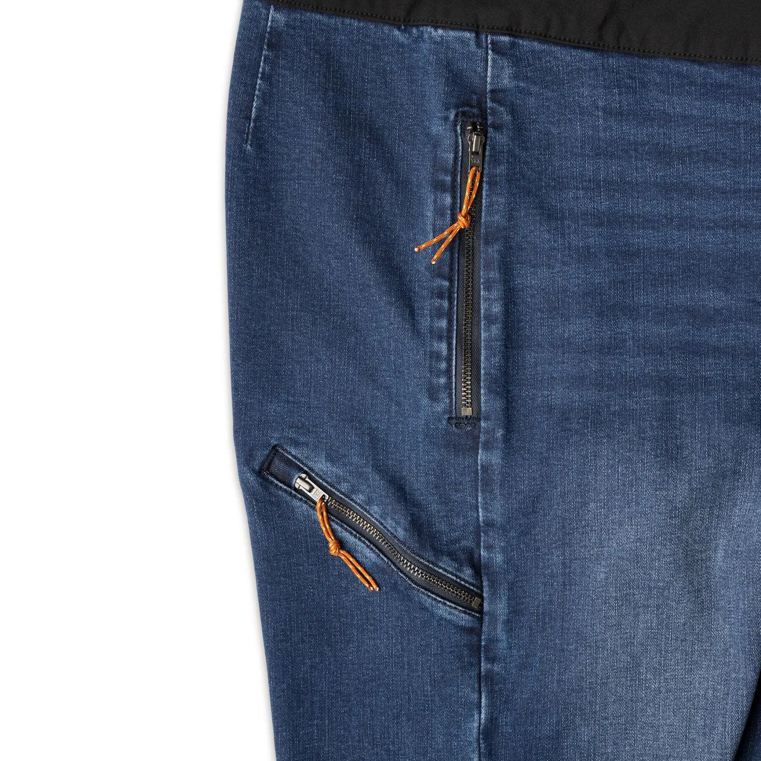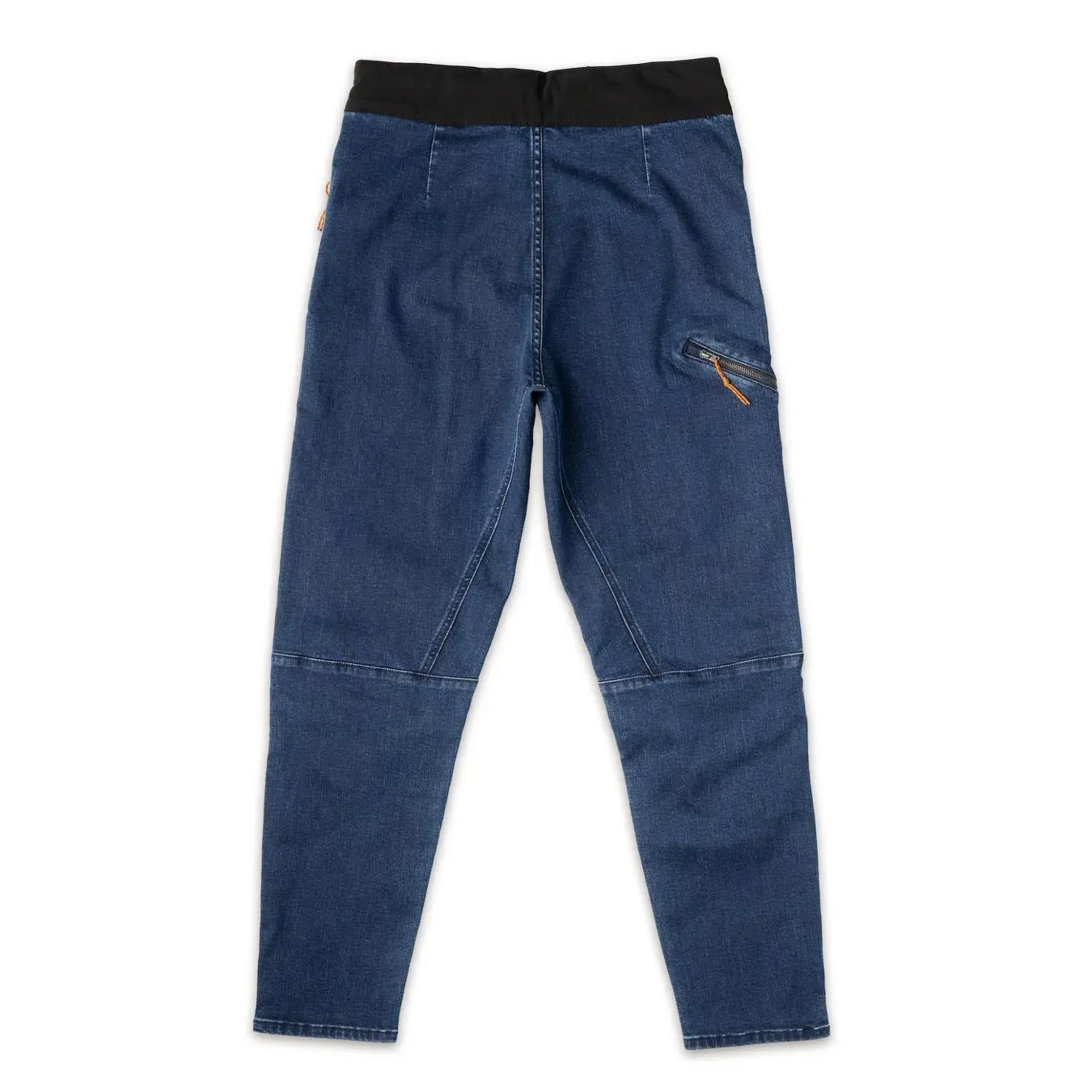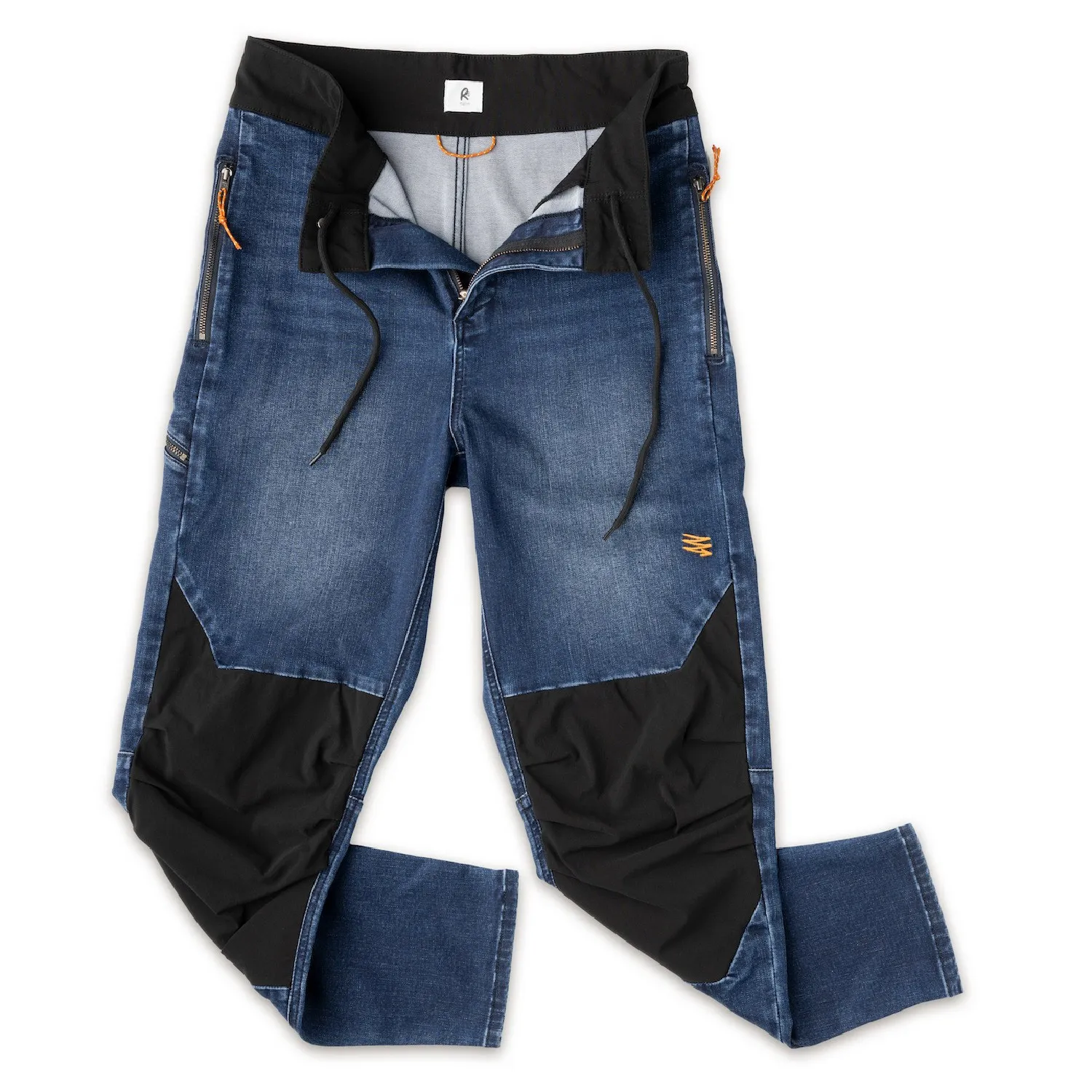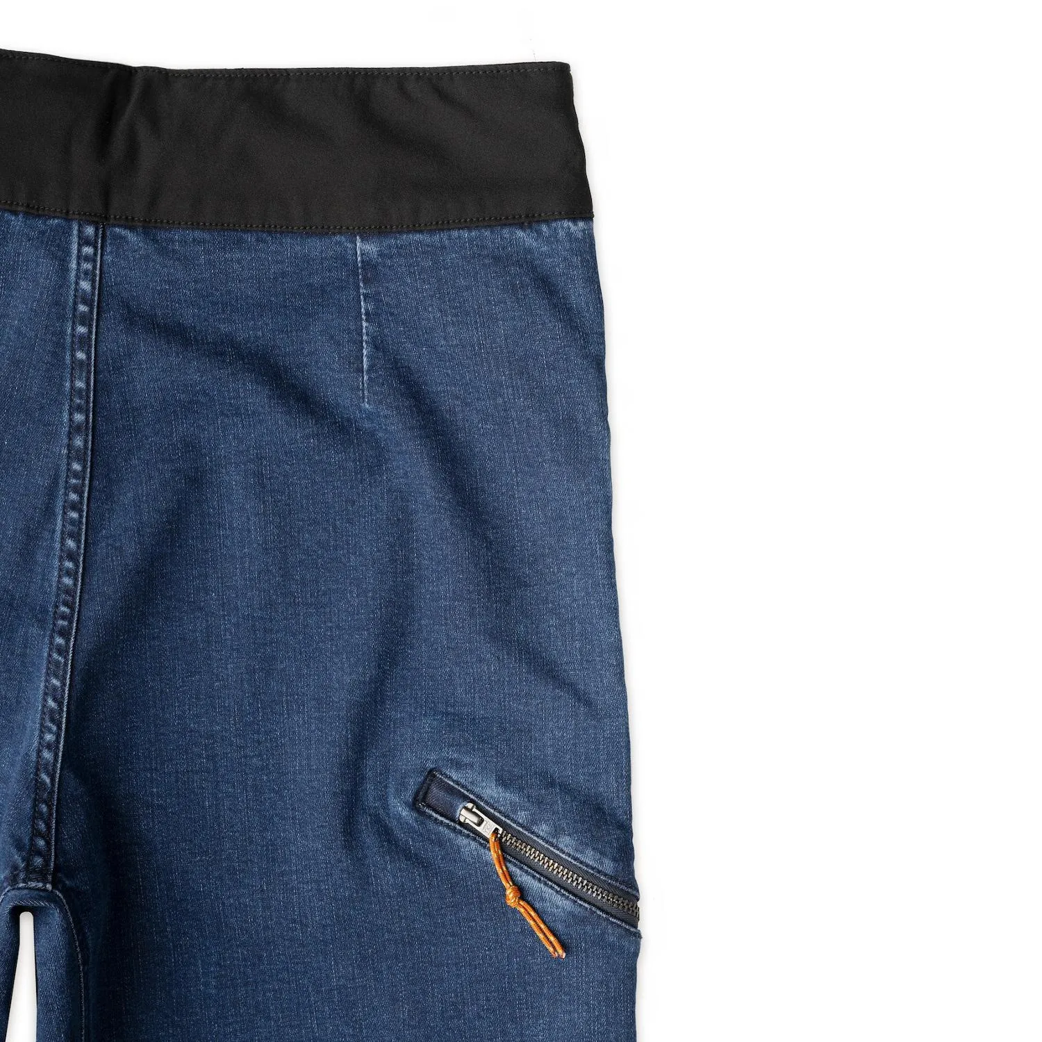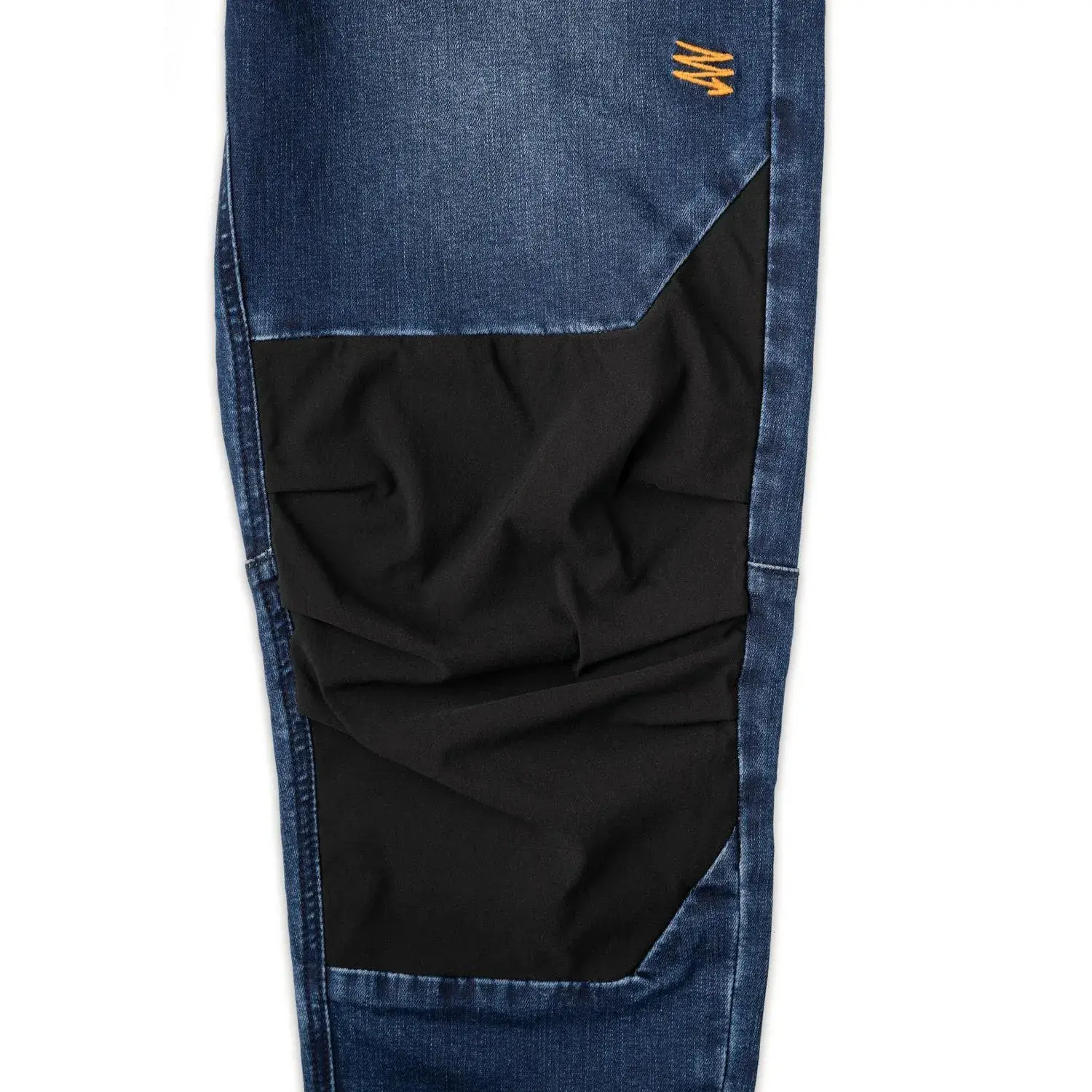 Прочные, анатомические колени сочетают внешний синтетический слой с внутренним денимом; двойная конструкция обеспечивает защиту от внешнего воздействия и влаги, а также внутреннюю гладкость