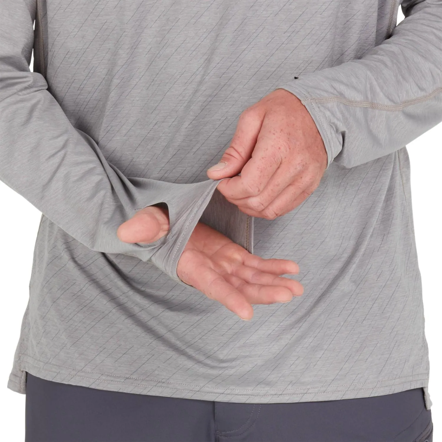 Сшитый на 100% из переработанного материала, технический текстиль улучшает естественный процесс охлаждения тела, отводя избыточную влагу и быстро сохнут. Ткань также обеспечивает защиту от солнца UPF 50+. Встроенные антимикробные элементы в ткани предотвращают накопление неприятных запахов. Расположение швов помогает избежать зон с высоким трением, улучшая спортивные показатели и позволяя вам грести, кататься на байдарке и плавать с комфортом. Слегка пониженный задний подол обеспечивает дополнительное покрытие. Лазерные отверстия для больших пальцев увеличивают защиту от солнца для верха рук, не добавляя ненужной громоздкости к манжетам. Зафиксируйте капюшон вокруг лица с помощью маленькой петли и пластиковой кнопки на передней стороне шеи. Обычная посадка для повседневного комфорта, как в одиночку, так и под спасательным жилетом, или в качестве базового слоя для технической верхней одежды.