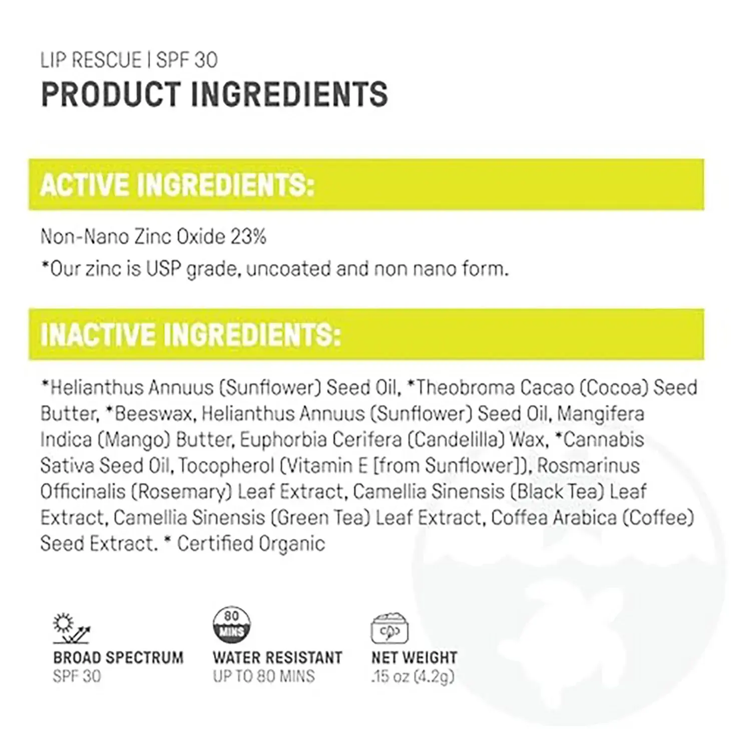 Будь то солнце, обнимающее пляж, или снежные склоны, бальзам для губ Raw Elements Lip Rescue с SPF 30 станет вашим надежным средством для защиты губ от жестких солнечных лучей.