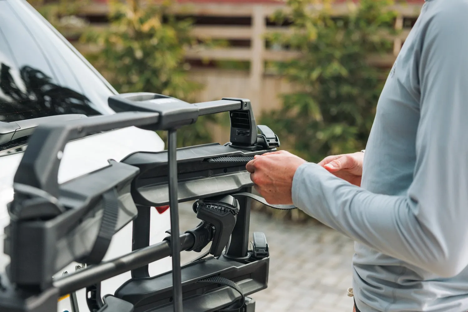 Место для хранения ремня для колеса аккуратно прячется во время загрузки велосипедов