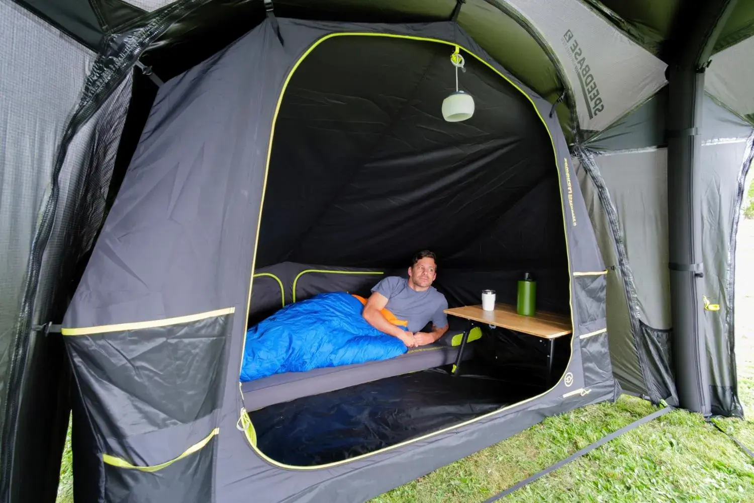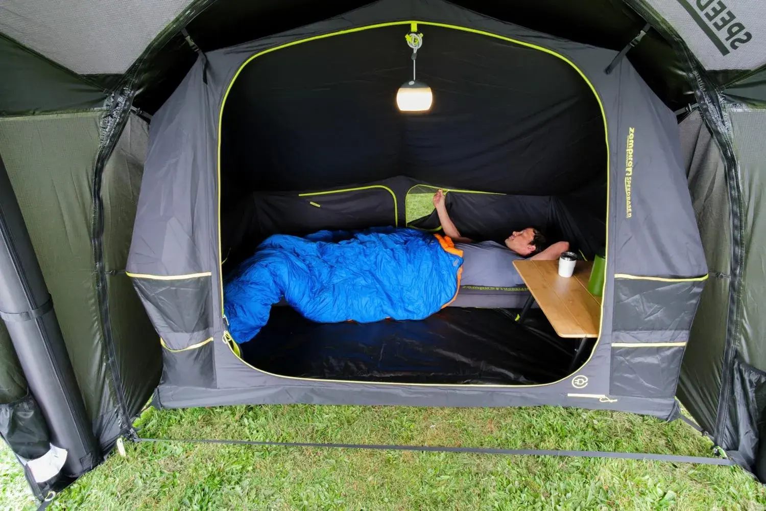 Улучшите свой шатер Speedbase 2 Air, прикрепив этот уютный, водонепроницаемый спальный кокон Zempire Speedbase 2 для 2 кемперов. С простой установкой и достаточным местом для хранения он делает кемпинг более комфортным.