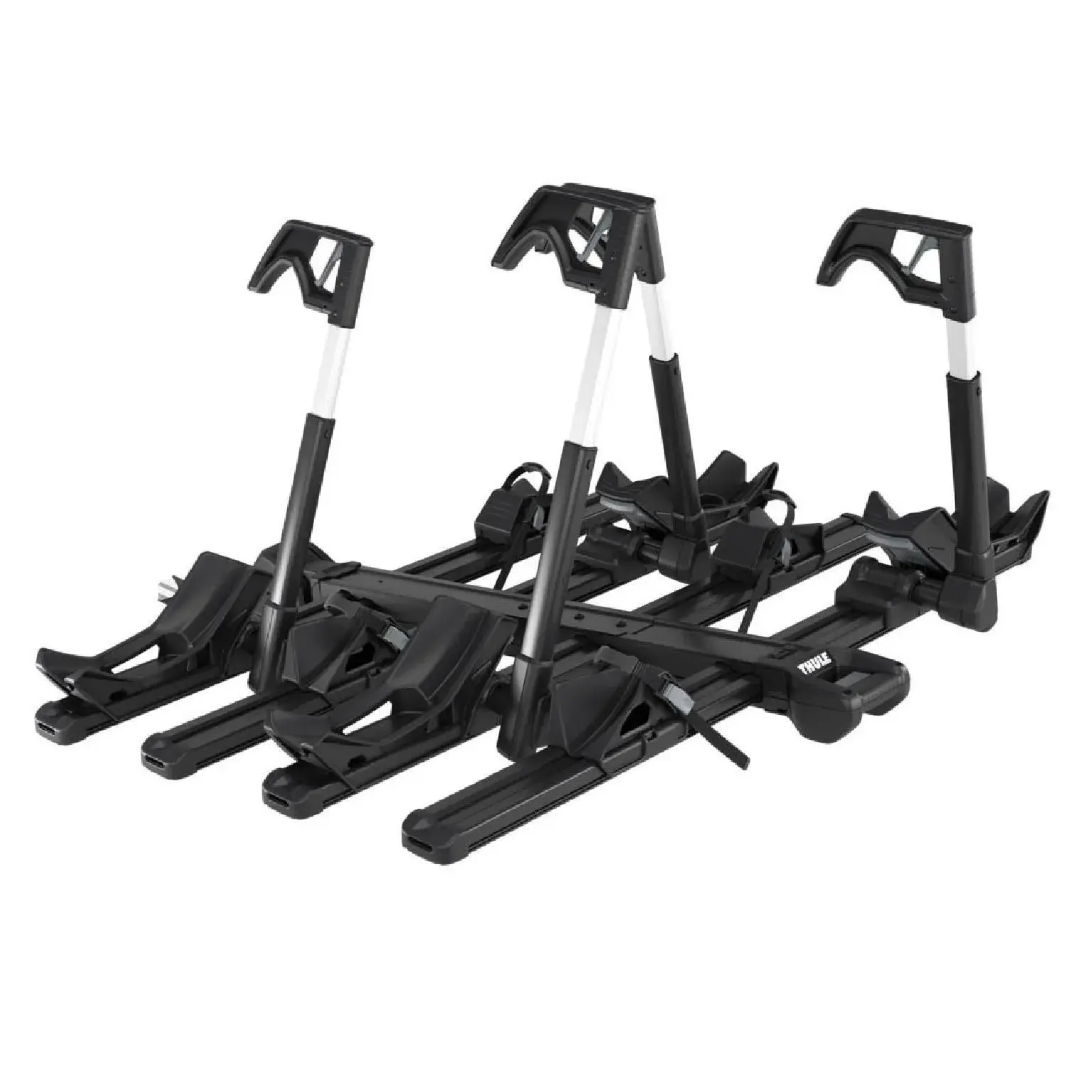 Запатентованные боковые держатели колес предлагают настройку без инструментов по запросу, позволяя 6 дюймов бокового регулирования между позициями велосипеда для минимизации контакта во время транспортировки