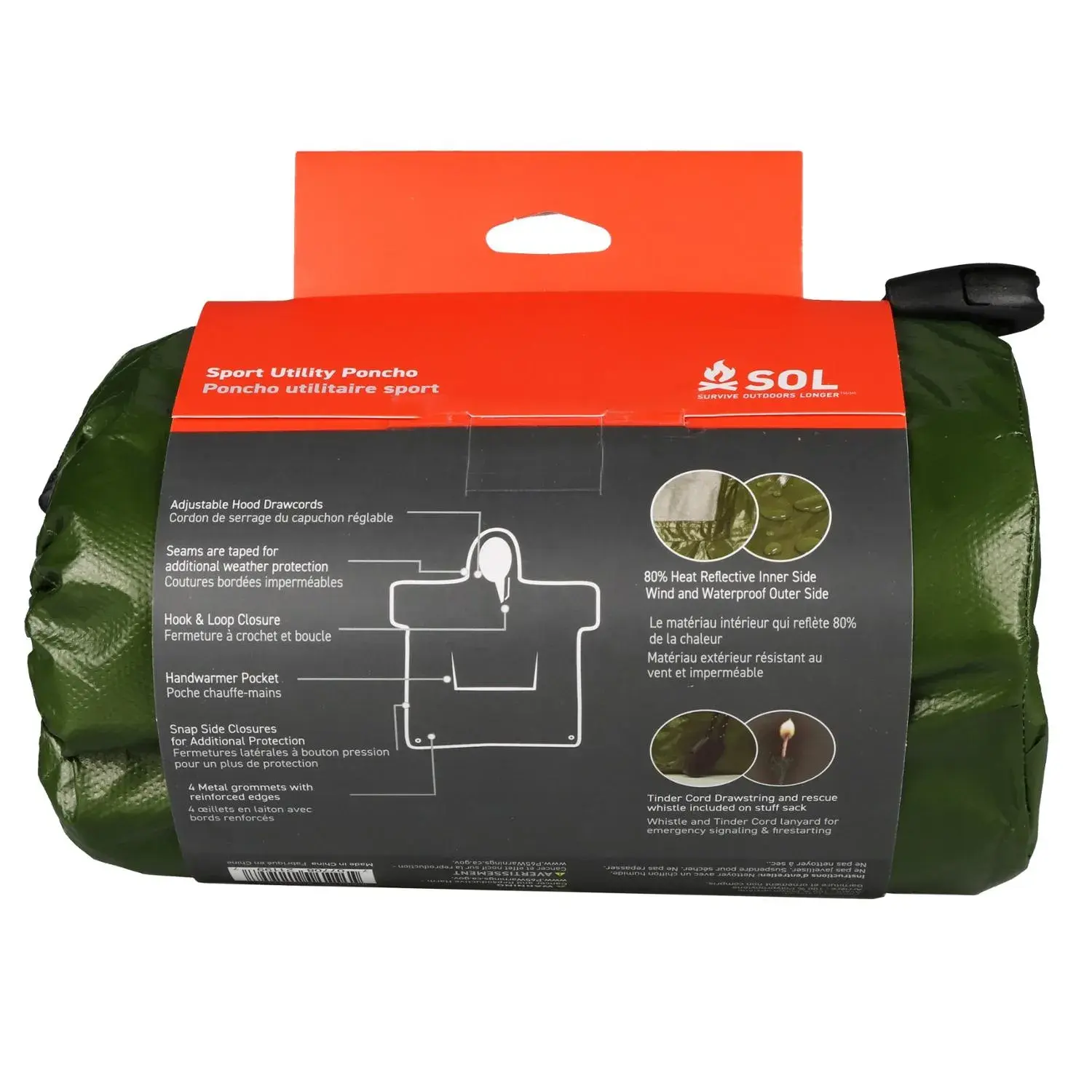 Оставайтесь защищенными от стихии с помощью пончо SOL Sport Utility. Компактный и легкий, он изготовлен на 80% из теплоотражающего материала, который является водонепроницаемым, ветронепроницаемым и устойчивым к разрывам.