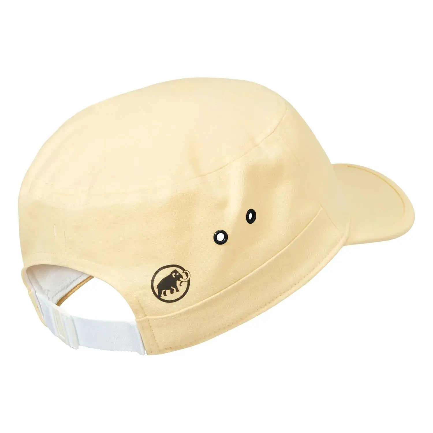 Защитите лицо от горного солнца. Эта шапка Mammut сделана из хлопкового холста. На задней стороне есть пряжка, которую можно использовать для регулировки размера шапки под вашу голову.