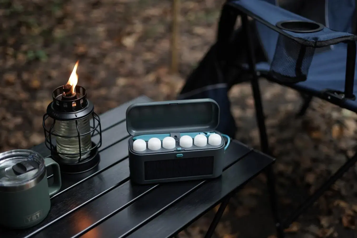 Аккумулятор емкостью 2600 мАч в зарядном кейсе можно заряжать с помощью высокоэффективной солнечной панели или быстро заряжать с помощью порта USB-C с включенным зарядным кабелем