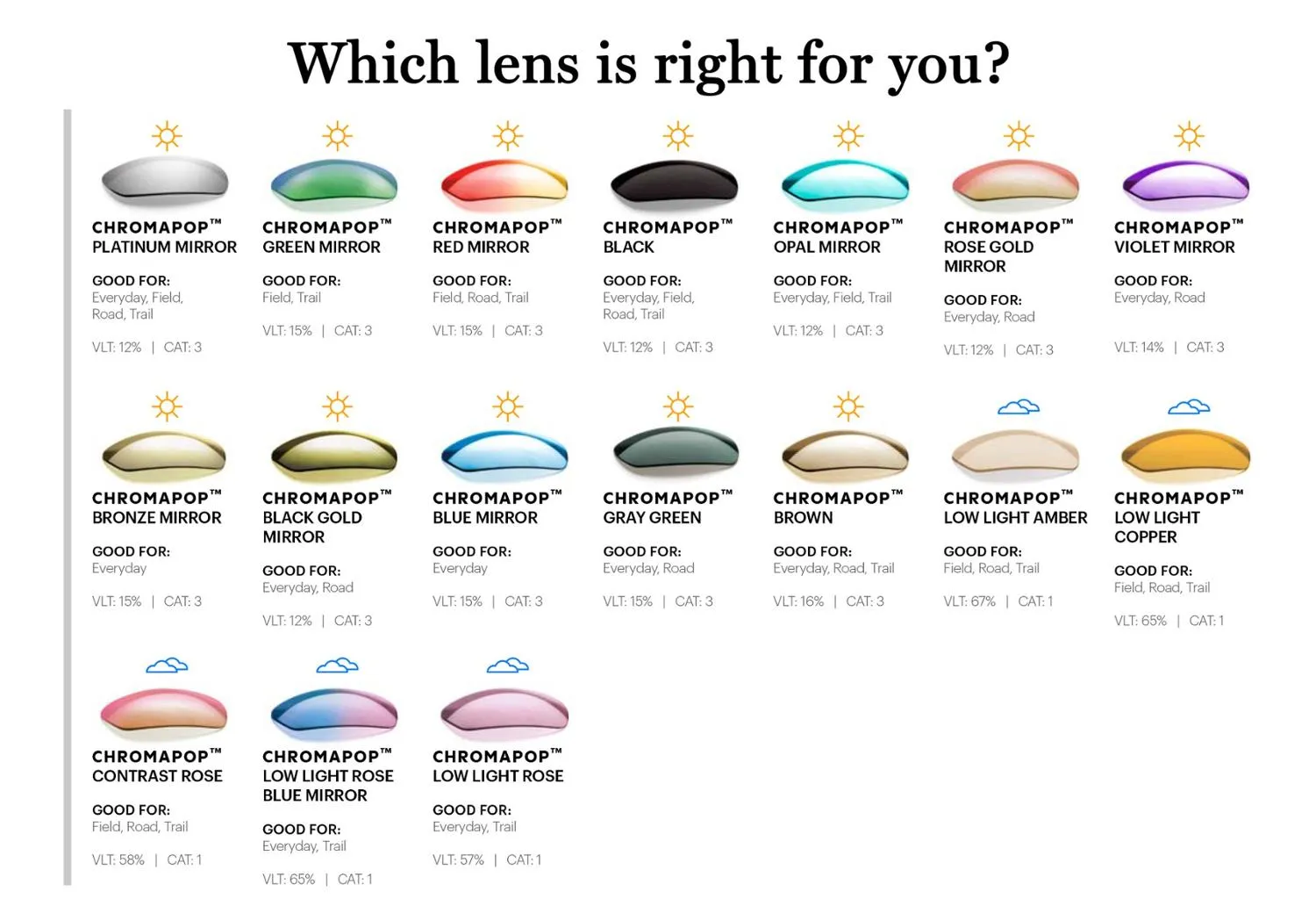 Цвет линз: CHROMAPOP BLACK: черный, CHROMAPOP OPAL MIRROR: Синий, CHROMAPOP LOW LIGHT COPPER: медный