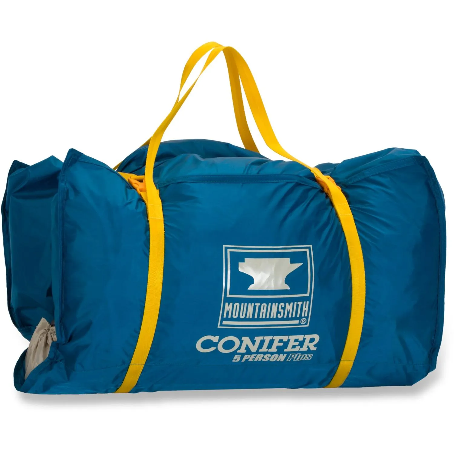 Большая палатка в стиле базового лагеря, палатка Mountainsmith Conifer 5+ комфортно разместит 2 взрослых, 3 детей и семейную собаку, чтобы сделать ваш следующий семейный поход настоящим успехом.