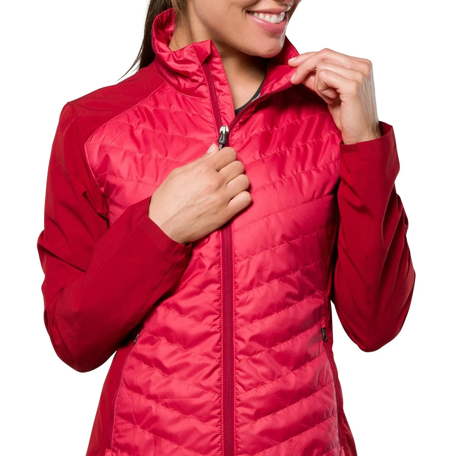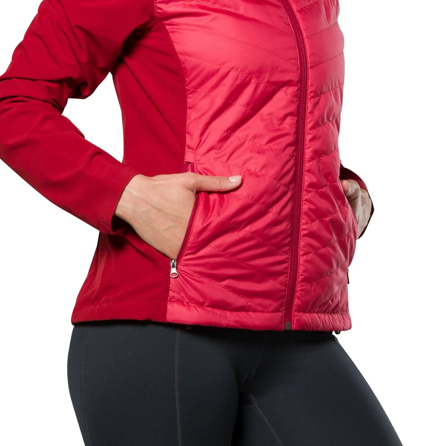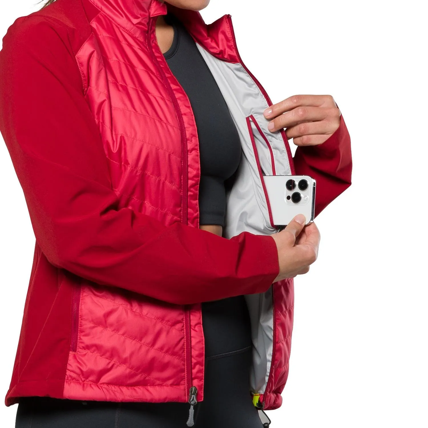 Легкая, эластичная, водоотталкивающая и ветронепроницаемая женская куртка Nathan Navigator Hybrid является техническим верхним слоем, который имеет 4-сторонние растяжимые боковые и задние панели для свободы движений.