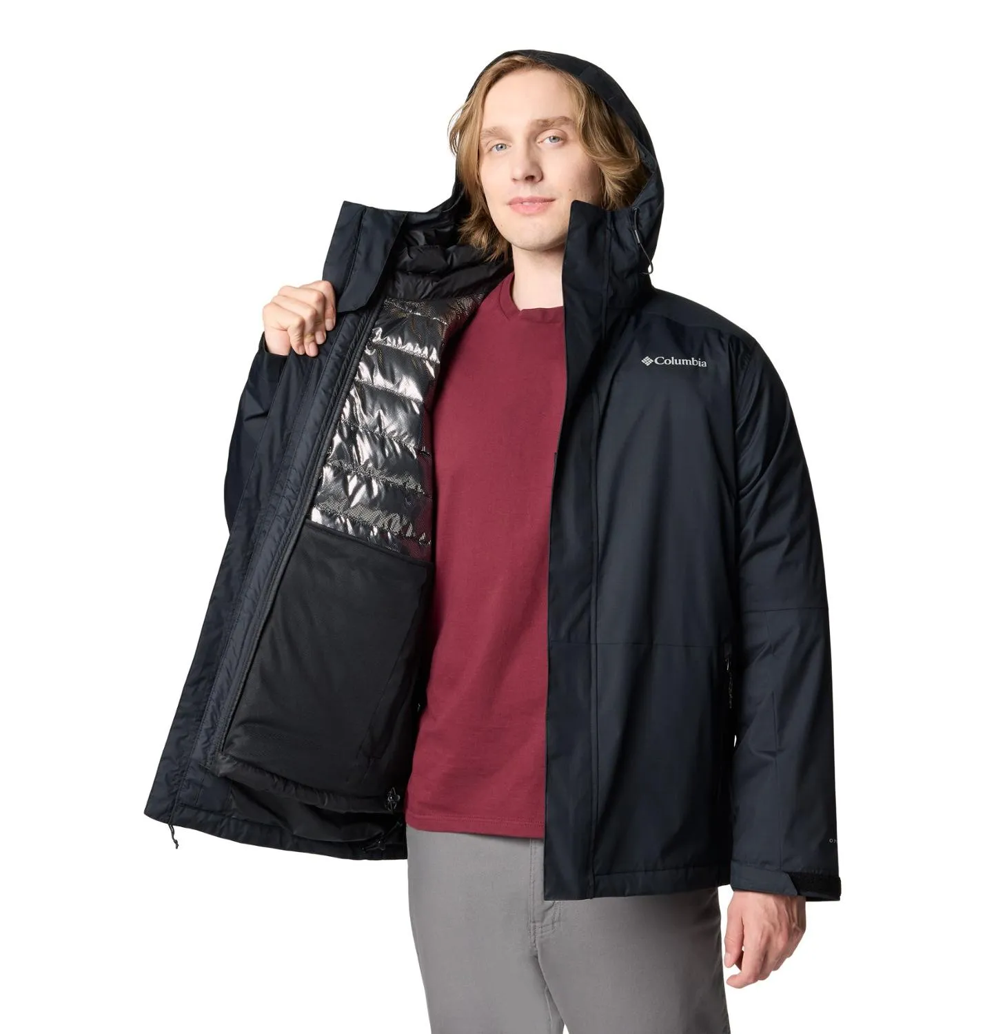 3-в-1 система включает в себя оболочку с запечатанными швами и утеплённую, терморефлективную подкладку