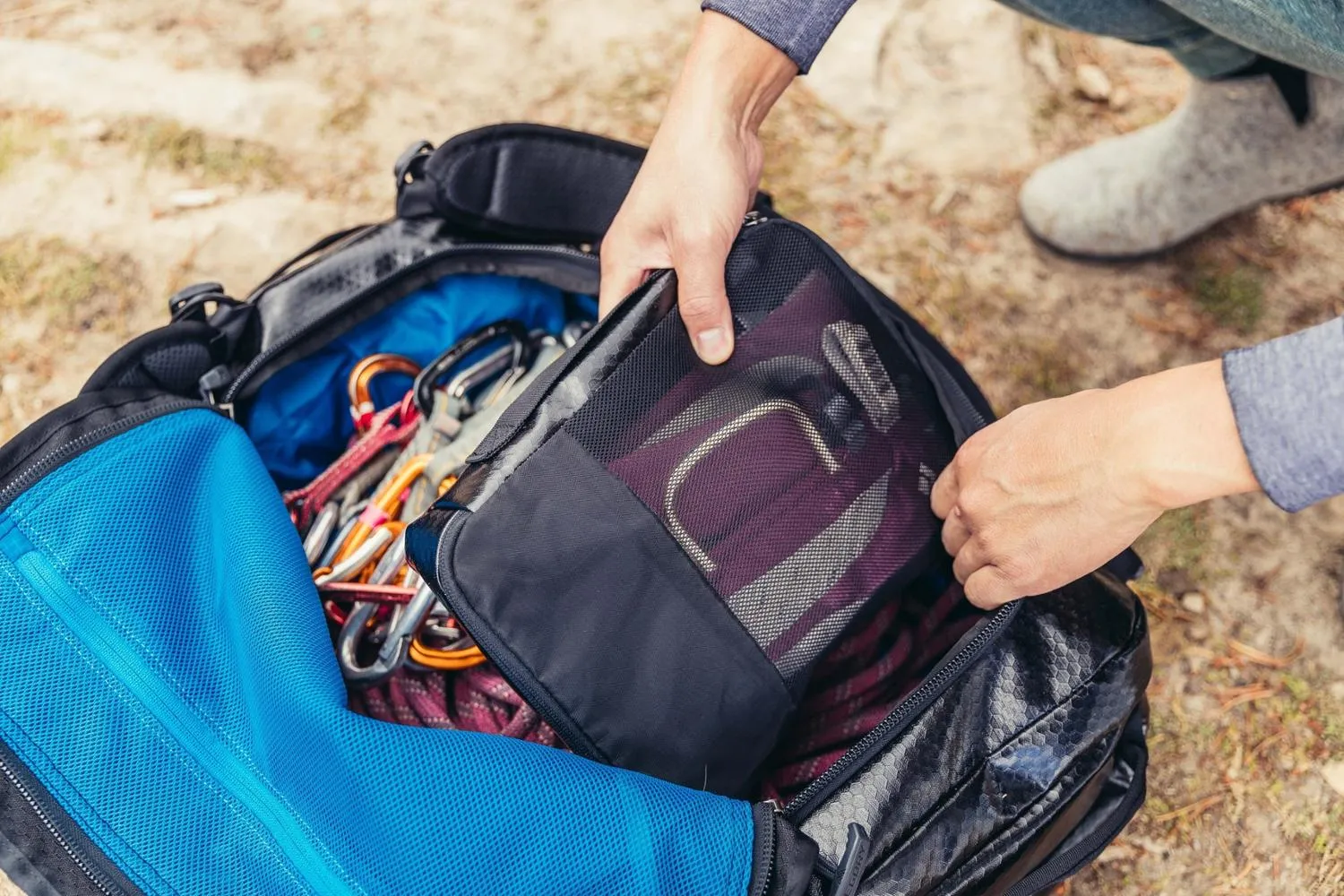 Расширяемый карман на конце с молнией, который позволяет держать грязное снаряжение и одежду отдельно от содержимого главного отсека