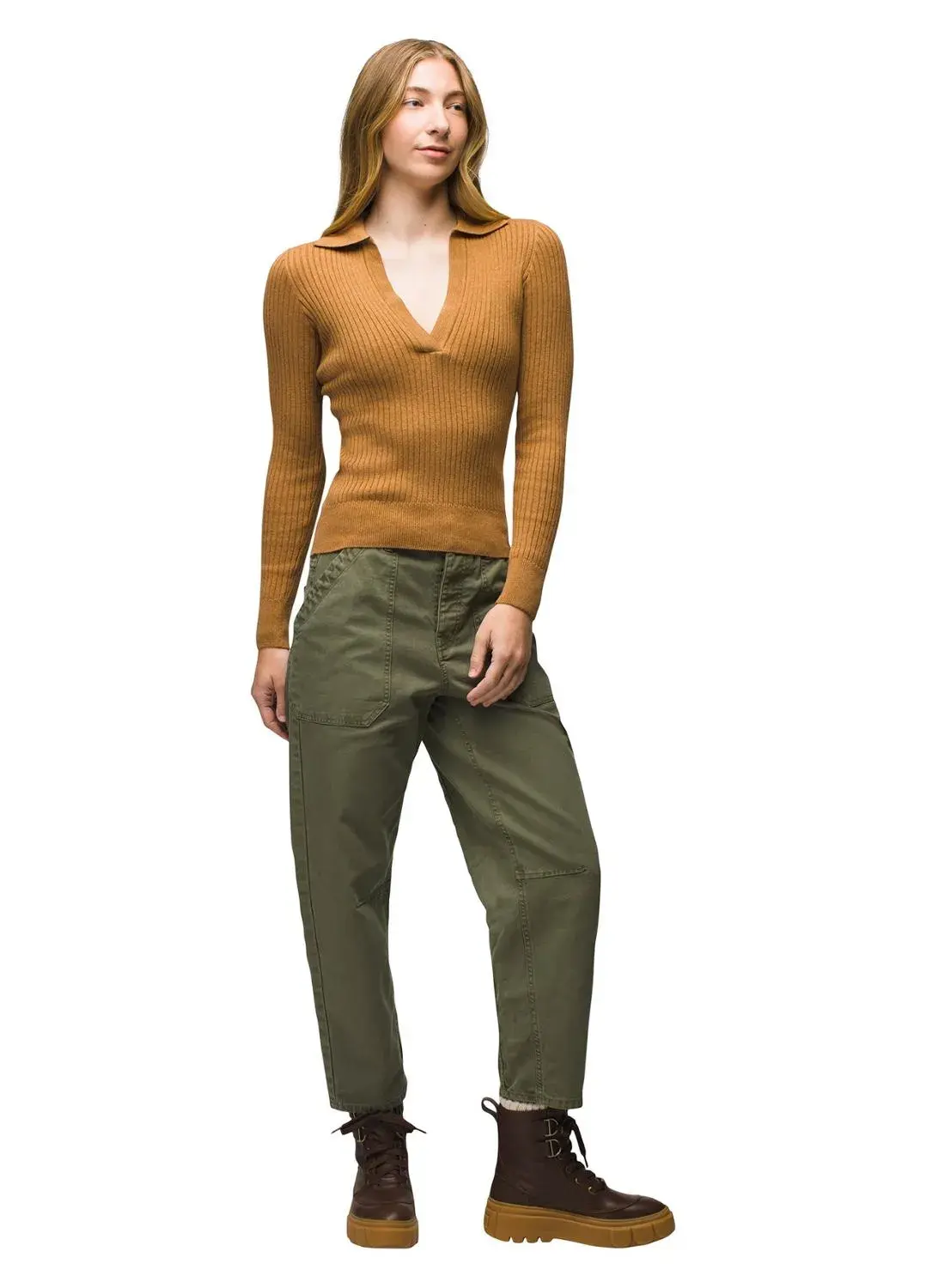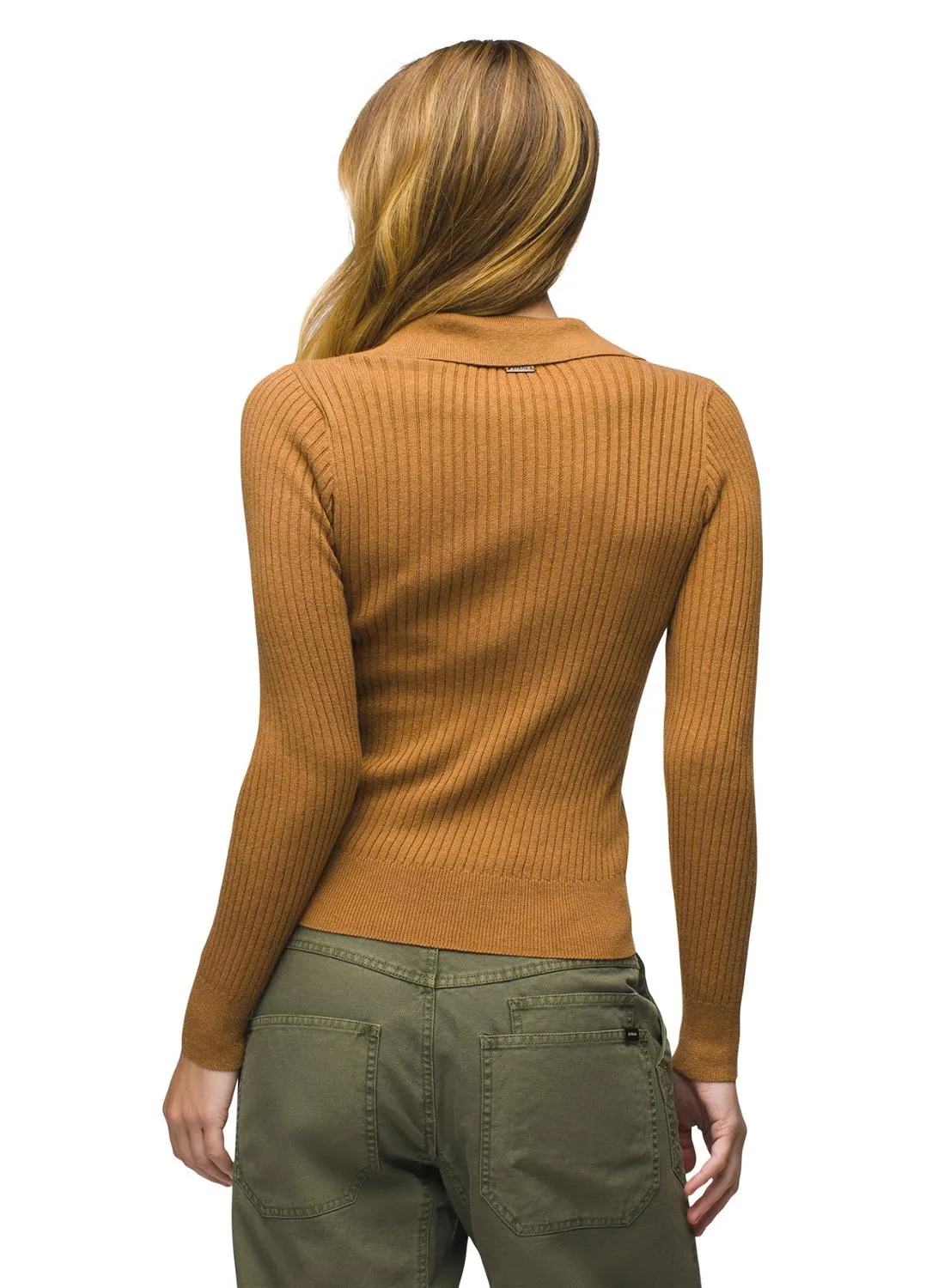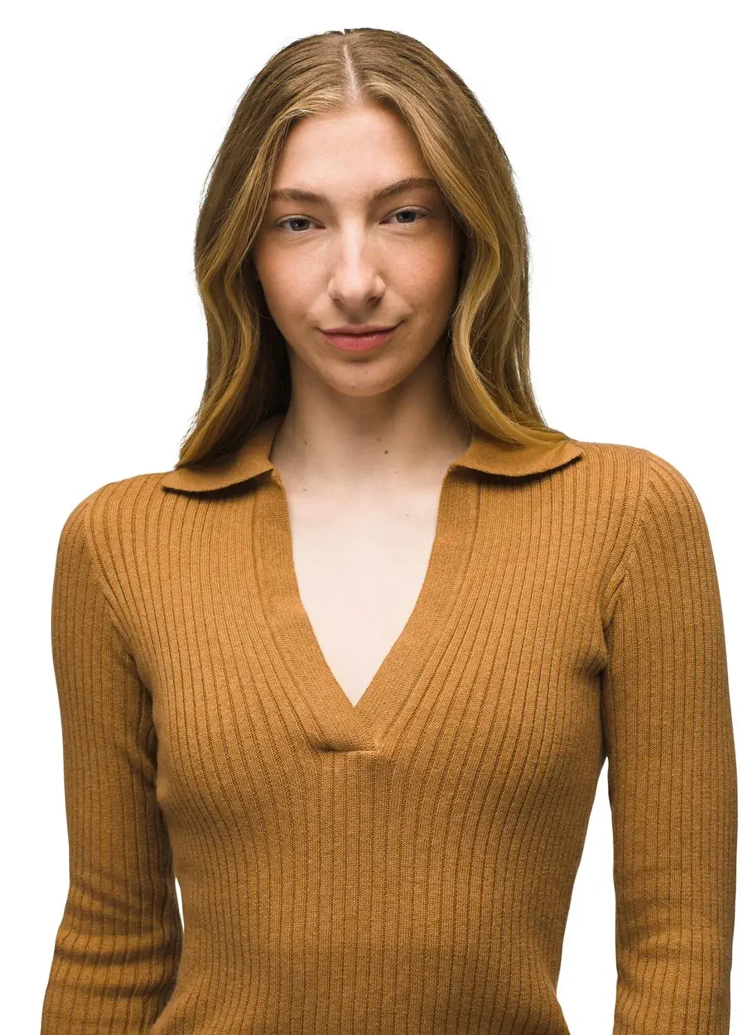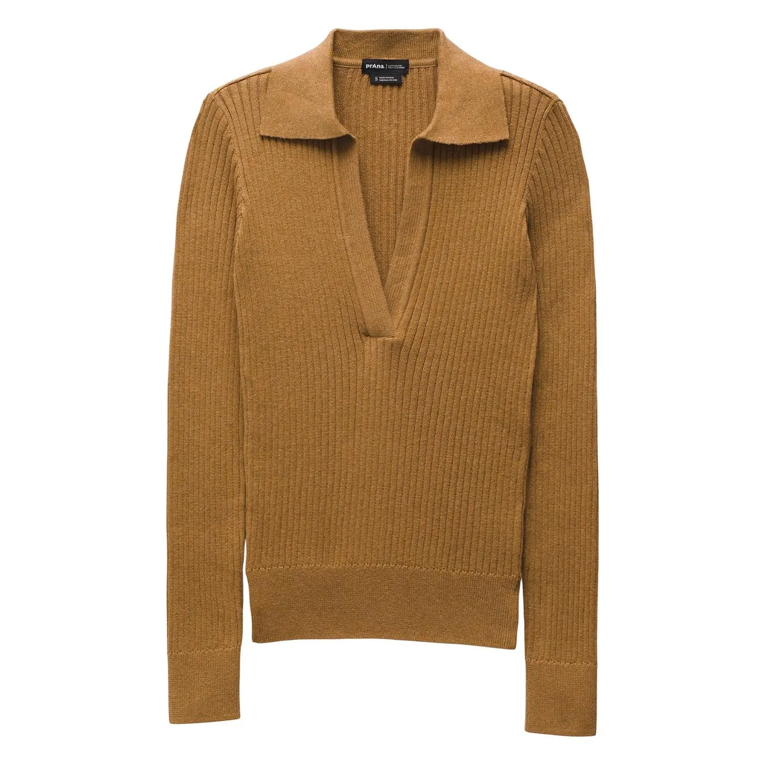 Сделанный из удобной ткани Milani, женский свитер prAna Milani Polo имеет элегантную рифленую текстуру и расслабленный воротник с глубоким V-образным вырезом. Обтягивающий фасон удобно носить под вашей любимой курткой.