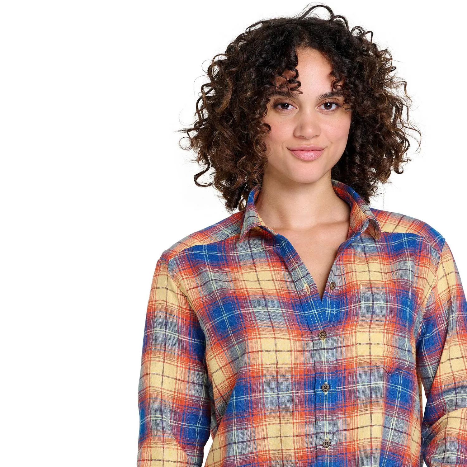 С яркими цветами женская рубашка Toad&Co Re-Form Flannel Boxy с длинными рукавами поднимает повседневные наряды на новый уровень благодаря воротнику петерпан, накладному карману на грудь и немного укороченной длине.