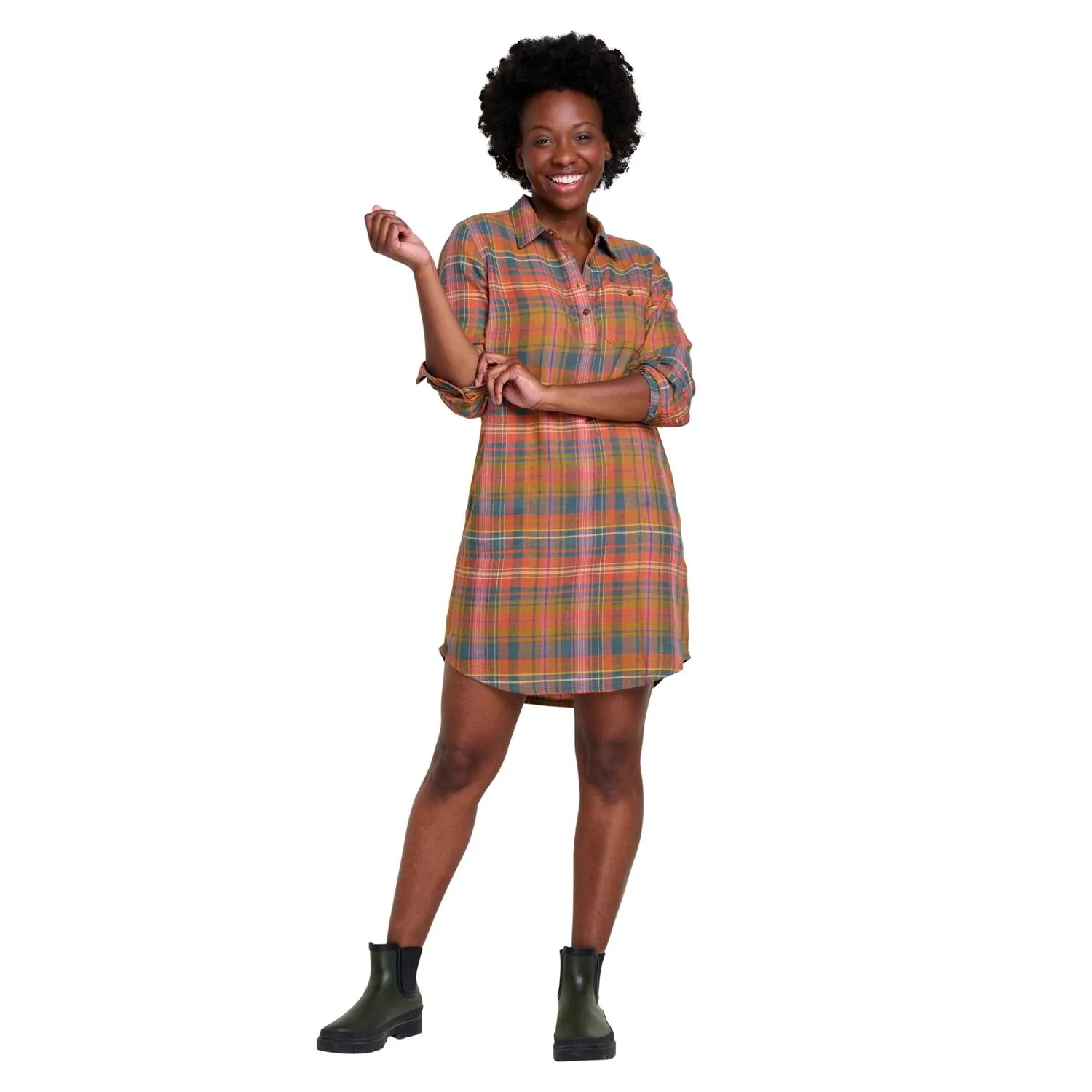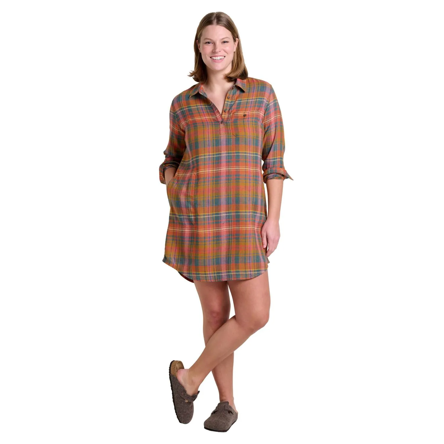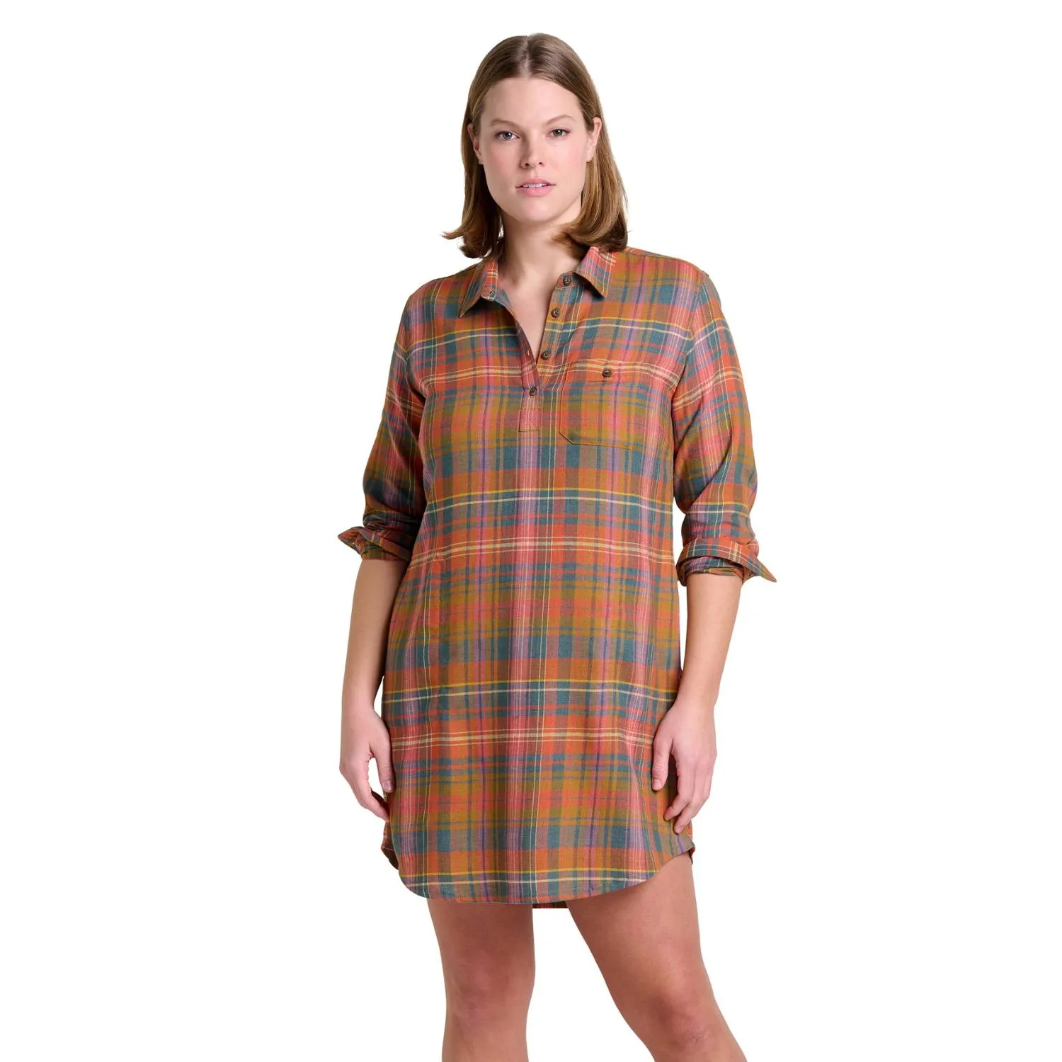 Реформированный поповер платье с длинным рукавом Toad&Co, Umber Madras