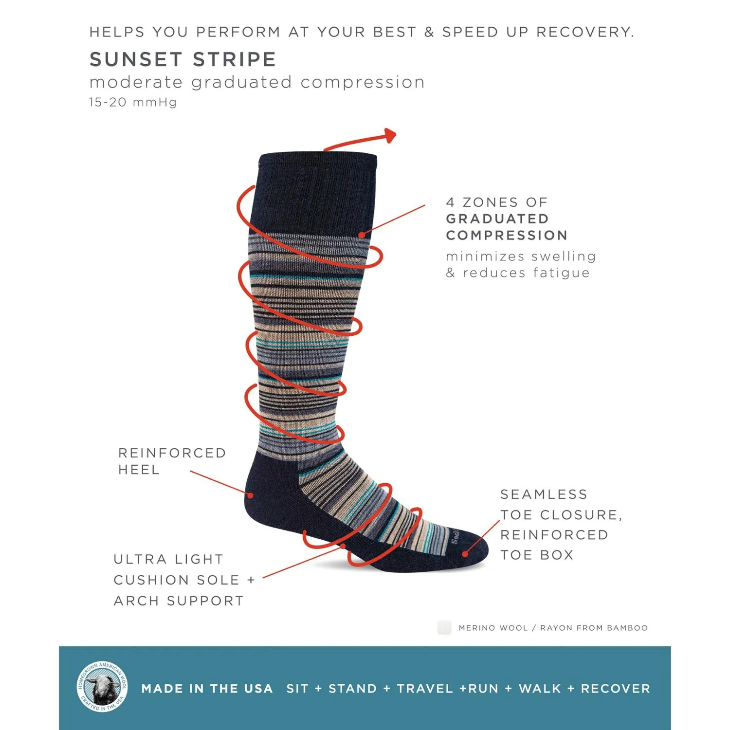 Мужские компрессионные носки с градиентной полосой Sunset Sockwell, Navy