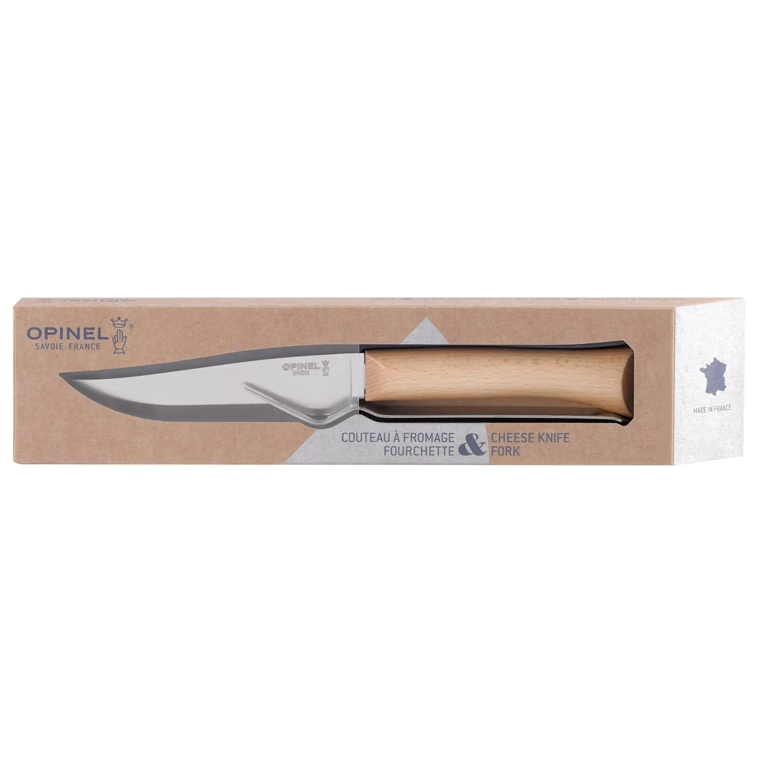 Созданный для легкого нарезания и сервировки, этот набор ножей Opinel необходим для любой сырной тарелки. Он включает в себя нож для сыра с фиксированным лезвием и многофункциональную вилку, которая также служит подставкой для ножа.