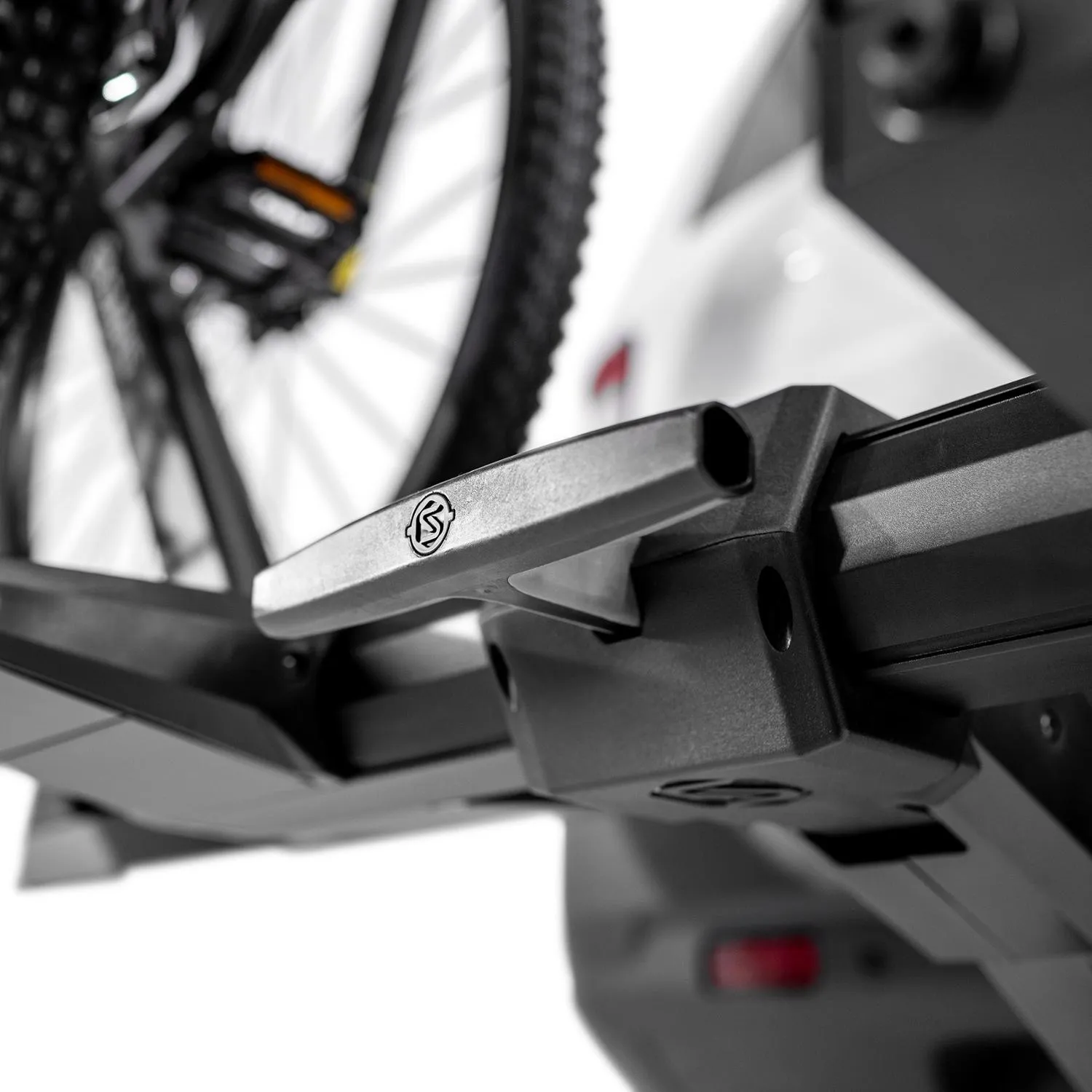 Перевозит 2 велосипеда весом до 60 фунтов каждый. Совместим с электро-велосипедами и велосипедами с крыльями. Подходит для велосипедов с колёсными базами до 50 дюймов. Подходит для размеров колёс от 24 до 29 x 3 дюймов. Регулируемый блок переднего колеса для улучшенной установки велосипеда с колёсами от 20 до 29 дюймов. Никакого контакта с рамой велосипеда: простой фиксированный пружинный рычаг не соприкасается с рамой или вилкой. Фиксированный рычаг устраняет догадки, где разместить рычаг и крючок на шине. Дизайн пружинного рычага надежно удерживает ваш велосипед на месте, даже в случае потери давления в шинах. Интегрированный запирающийся крючок и штифт для сцепки обеспечивают уверенность в том, что ваши велосипеды и крепление зафиксированы. Интегрированная петля для замка предоставляет дополнительную точку для запирания и повышает безопасность с помощью запирающего кабеля. Система против качания без инструментов обеспечивает быструю и надежную связь с автомобилем. Дизайн с наклоном и складыванием позволяет получить доступ к люку, заднему бамперу или багажнику с загруженными велосипедами; также уменьшает занимаемое пространство, когда не используется. Полностью алюминиевая конструкция. делает стойку легкой, прочной и устойчивой к ржавчине