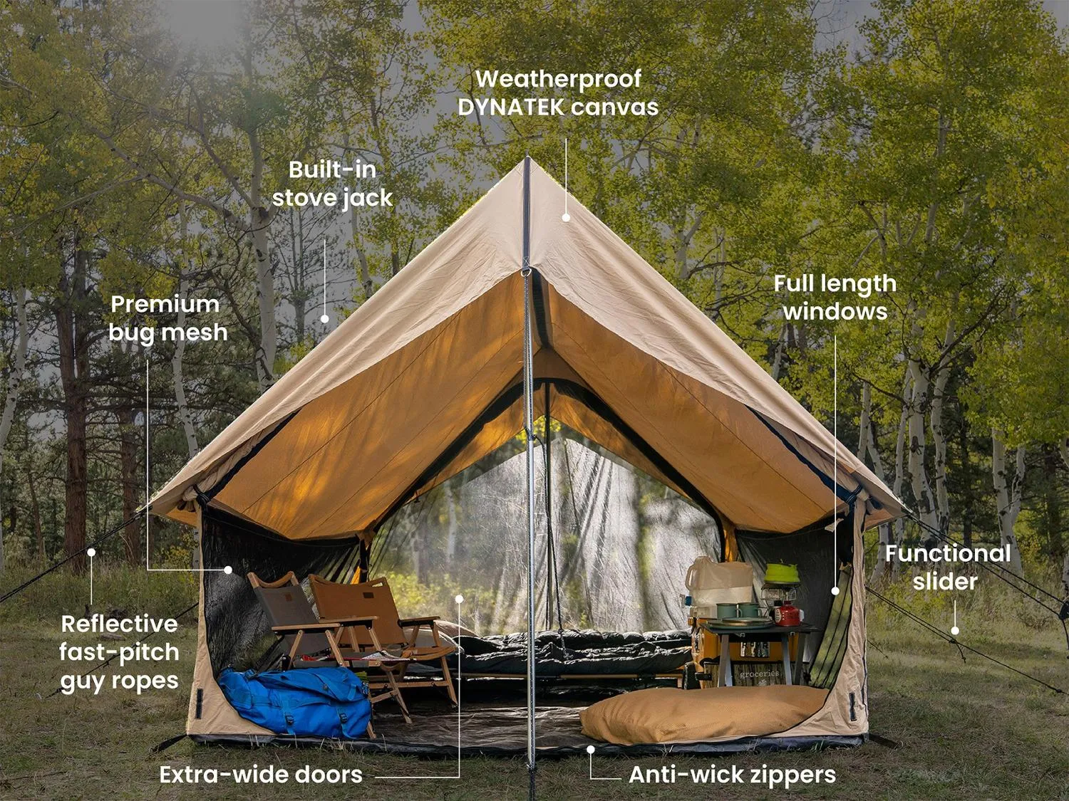 Совместимо с дополнительными аксессуарами, включая защитный тент и подстилку (не включены) для расширенного жилого пространства на открытом воздухе