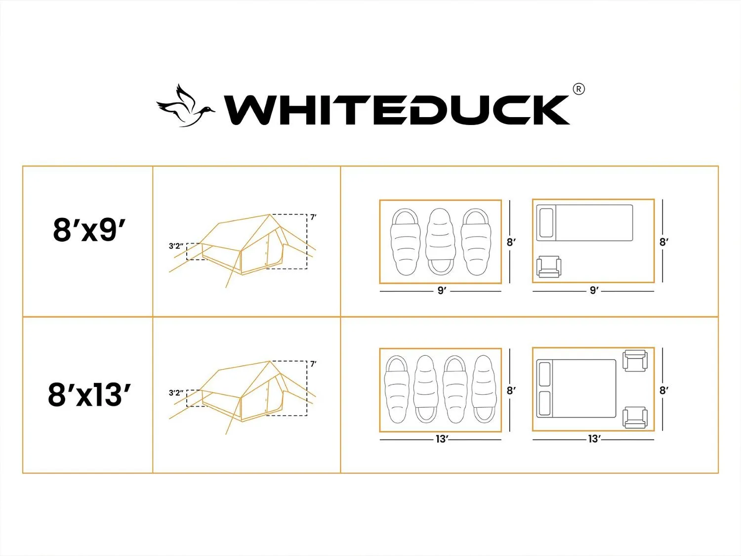 Прямоугольная форма пола максимизирует полезное пространство для вашей постели и снаряжения