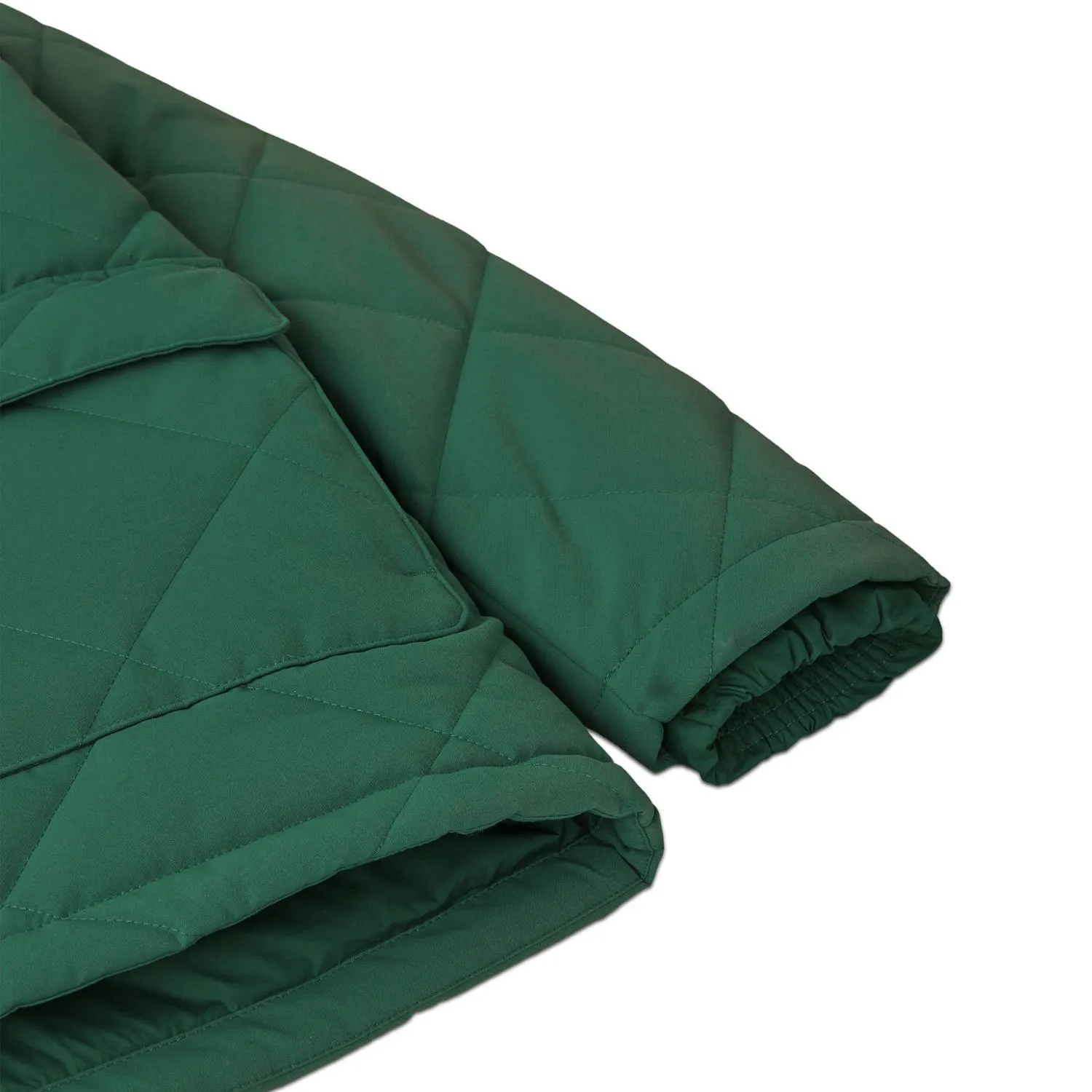 Алмазная стежка и удлиненный подол обеспечивают комфорт и дополнительное тепло. Верх сделан из 2-слойного, 5.3 унции, 100% Переработанного полиэстера гофрированного полотна с водонепроницаемым/дышащим барьером и защитой от воды с долговечным водоотталкивающим (DWR) покрытием. DWR изготовлен без перфторированных химических веществ (PFC/PFAS). Куртка подбитая гладким 100% Переработанным полиэстером тафта. Тело утеплено уютным Thermogreen 100% Переработанным полиэстером; капюшон и торс имеют 200 г утеплителя, а рукава - 150 г. Капюшон из 3-х панелей имеет внутренний клин для предотвращения попадания дождя, а также внутренний стоячий воротник. Молния по всей длине с накрытым складным клапаном, внутренним штормовым клапаном и мягким щитком для подбородка из щершащего трикотажа. 2 больших накладных кармана спереди обиты мягким трикотажем, с двойным входом сверху или сбоку для удобства использования. Мягкая эластичная вставка внутри манжет. Сделано на фабрике с сертификацией Fair Trade, что означает, что люди, изготовившие этот продукт, получили премию за свой труд.