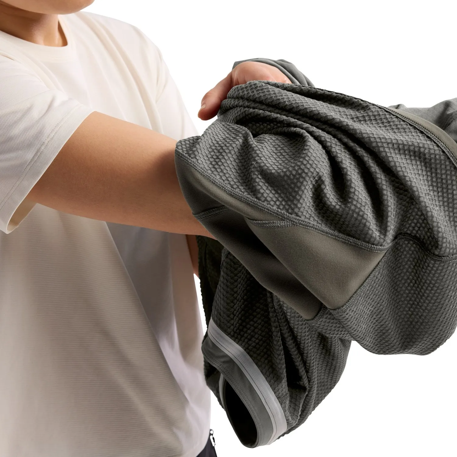 Ткань Phasic AR II из переработанного полиэстера мягкая, тянется и обеспечивает тепловой комфорт, и она изготовлена с влагоотводящими волокнами