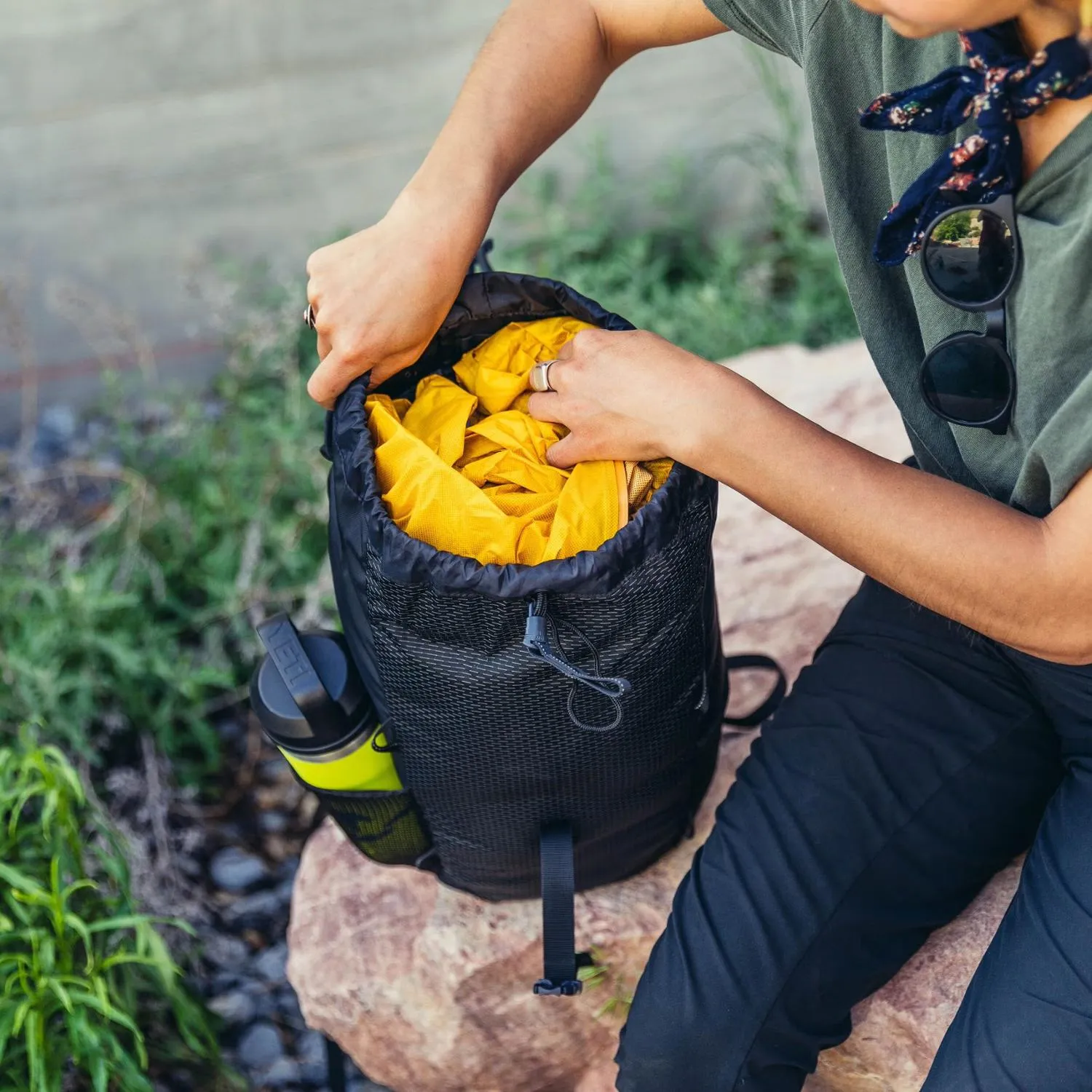 Корпус рюкзака изготовлен из нейлона Honeycomb CryptoRip HD с плотностью 210 ден и нейлона высокой плотности с плотностью 420 ден с водоотталкивающей пропиткой C0 (без PFAS)