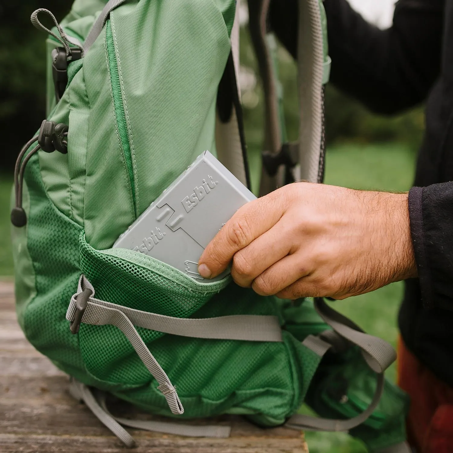 Двухпозиционный дизайн позволяет использовать слабый пламень для контролируемого приготовления или прямое пламя для более быстрого закипания. Питается от таблеток твердого топлива Esbit (в комплекте 6 штук); каждая таблетка горит примерно 12 минут. Нетоксичное топливо безопасно для окружающей среды, не оставляет золы и почти не имеет запаха. Его небольшой размер и стабильный источник топлива делают эту плиту отличным дополнением к вашему набору для экстренной подготовки. Дополнительные топливные таблетки продаются отдельно.