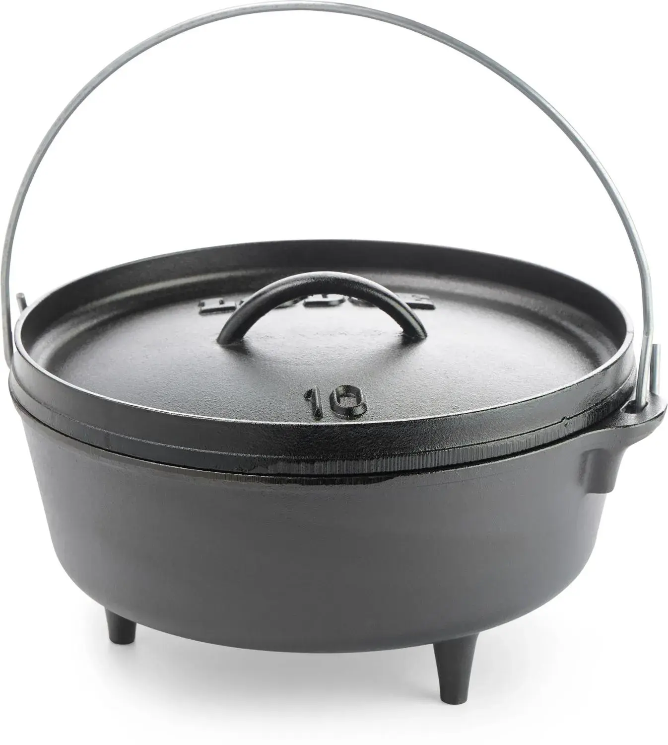 Компания Lodge покрывает всю поверхность кастрюли специальной формулой растительного масла, а затем запекает масло на utensil в горячей промышленной печи. Высокая температура позволяет маслу глубоко проникнуть в поверхность чугуна, создавая этот ценный семейный finish. Чугунная кастрюля равномерно распределяет тепло — идеально для быстрых, высокотемпературных подрумяниваний и длительного, медленного приготовления. Кастрюля имеет диаметр 10 дюймов и крышку с ручками для удобства. Плотная крышка с фланцем делает самостерилизующееся покрытие, которое удерживает тепло. Глубокая голландская печь Lodge идеально подходит для тушеных блюд или мяса.